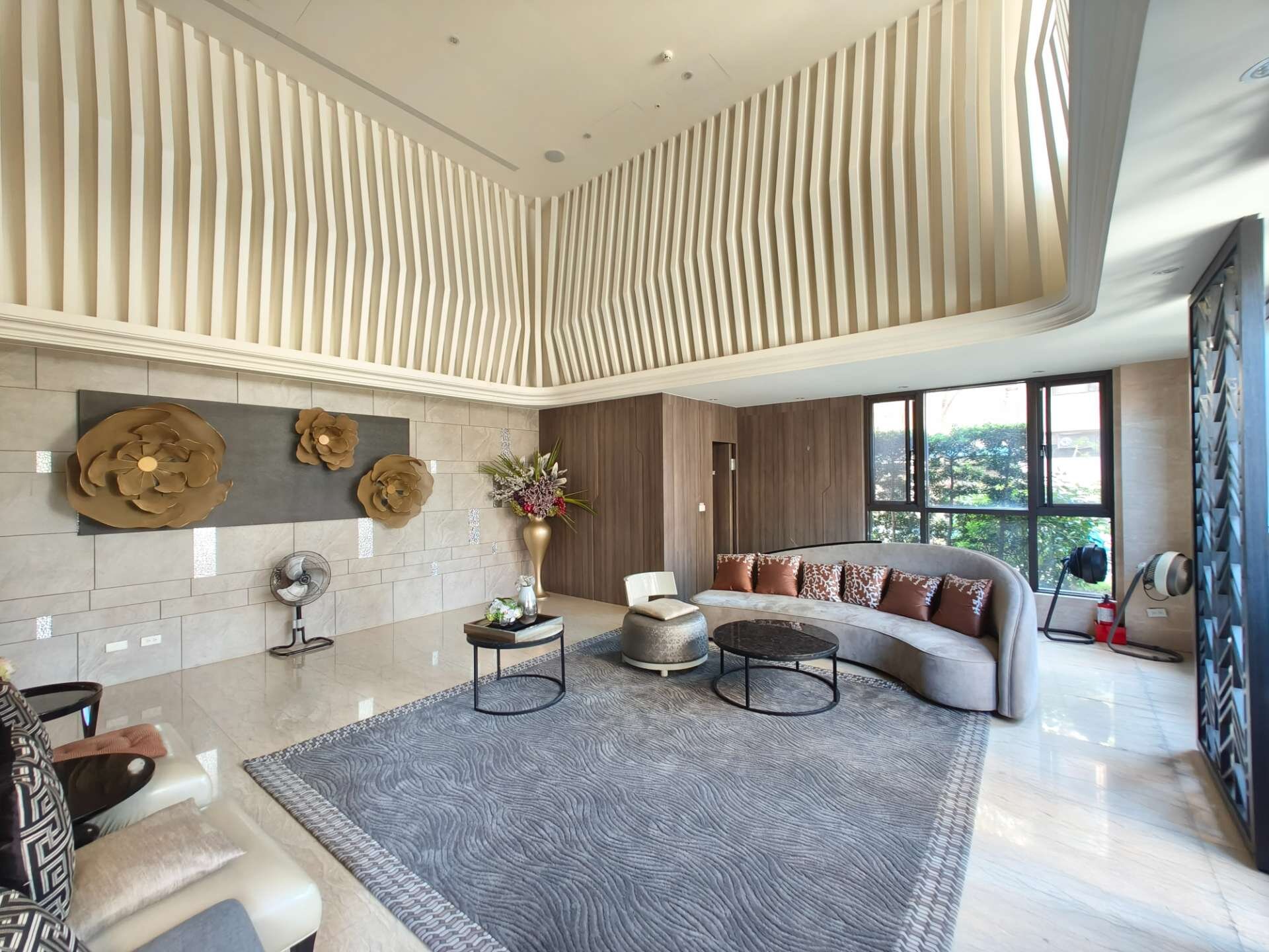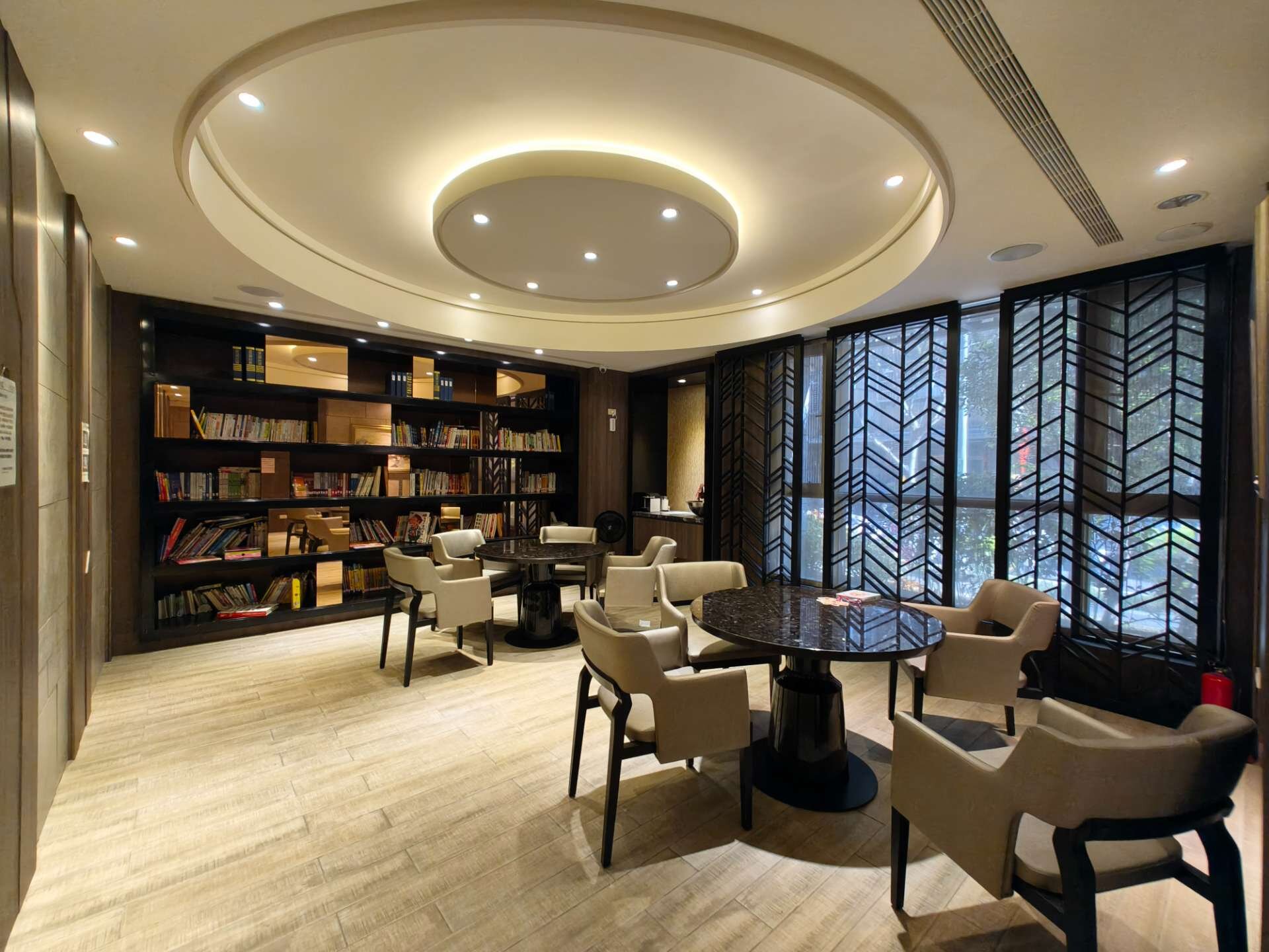 1F:中庭花園,挑高會客大廳,交誼廳,咖啡閱讀區,垃圾分類室