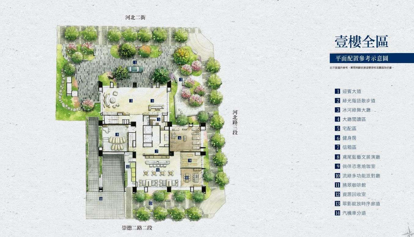 📍公設項目:迎賓大廳、中庭花園、空中花園、閱讀區、藝文展演廳、多空能派對廳、