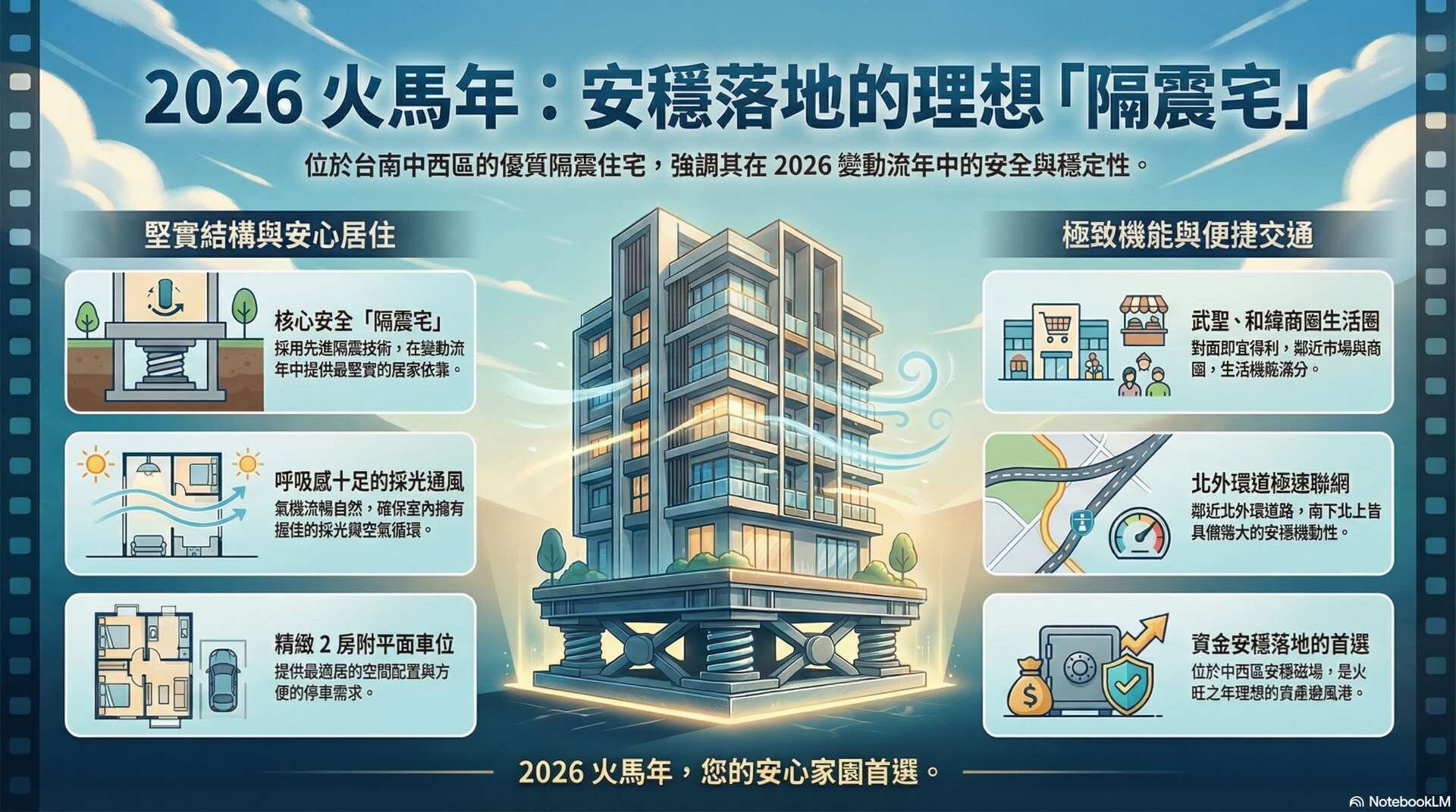 • 安全結構: 採用「隔震」系統,變動流年中最堅實的依靠。