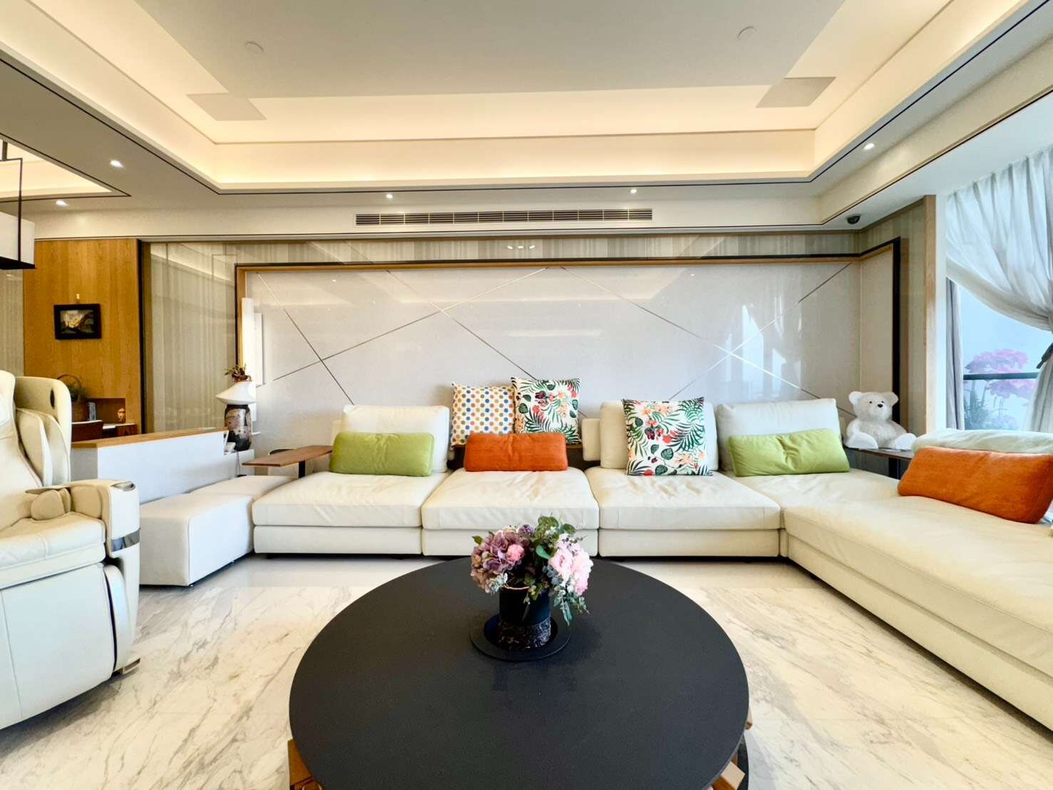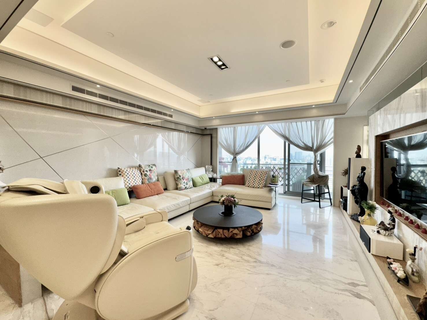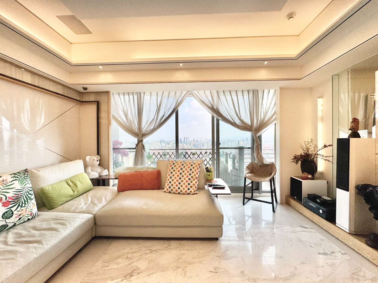 2. 稀有高樓層景觀 22樓四房大坪數,享有永久棟距與無遮蔽視野,白天俯瞰七期繁華,夜晚城市燈火一覽無遺。