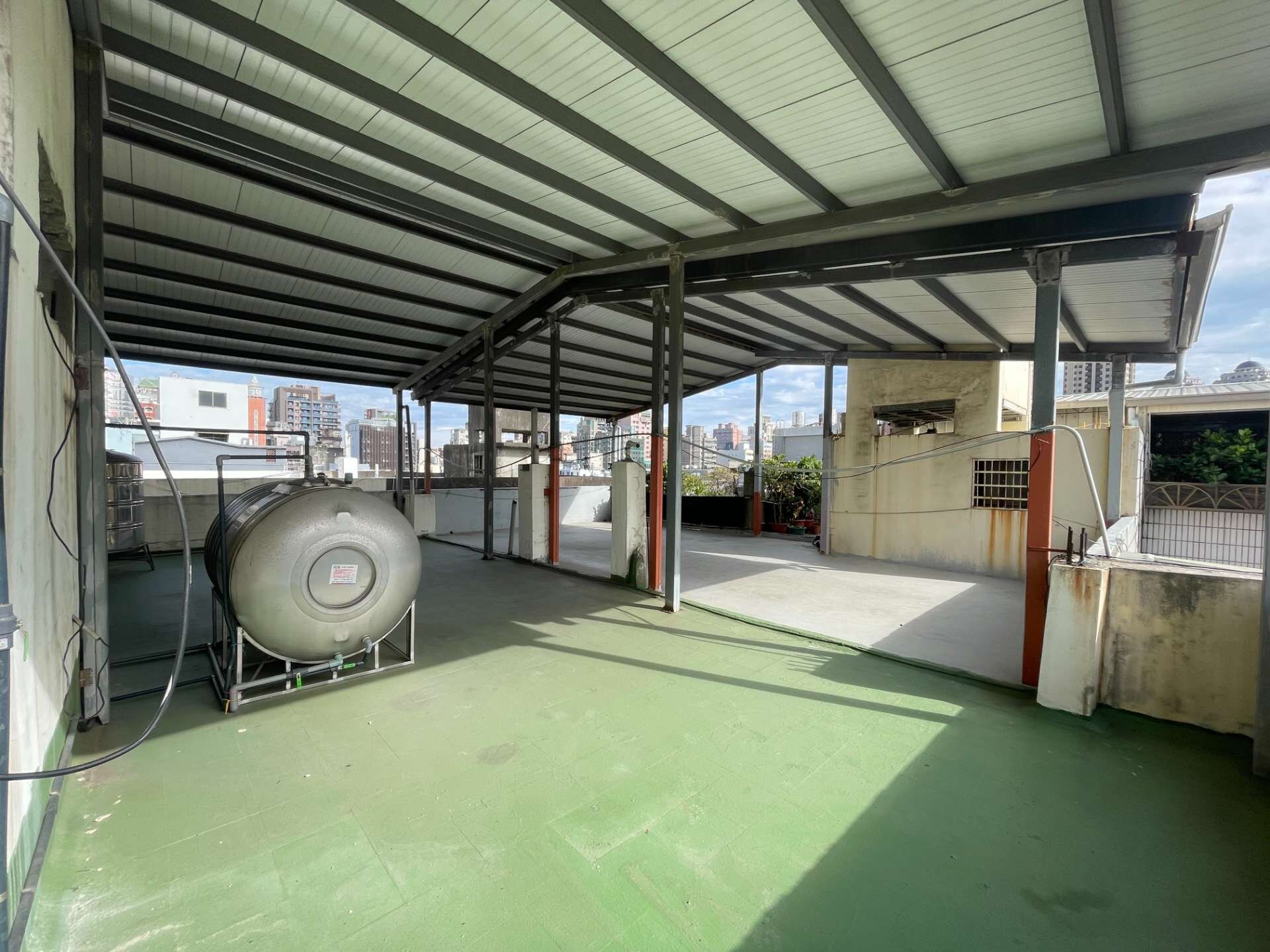頂樓已搭設鐵皮遮雨棚
