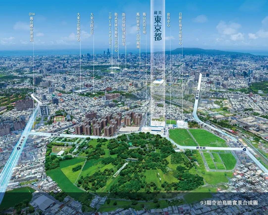 近衛武營、空中鳳城火車站、文山特區、大東文化中心、三井LaLaport。
