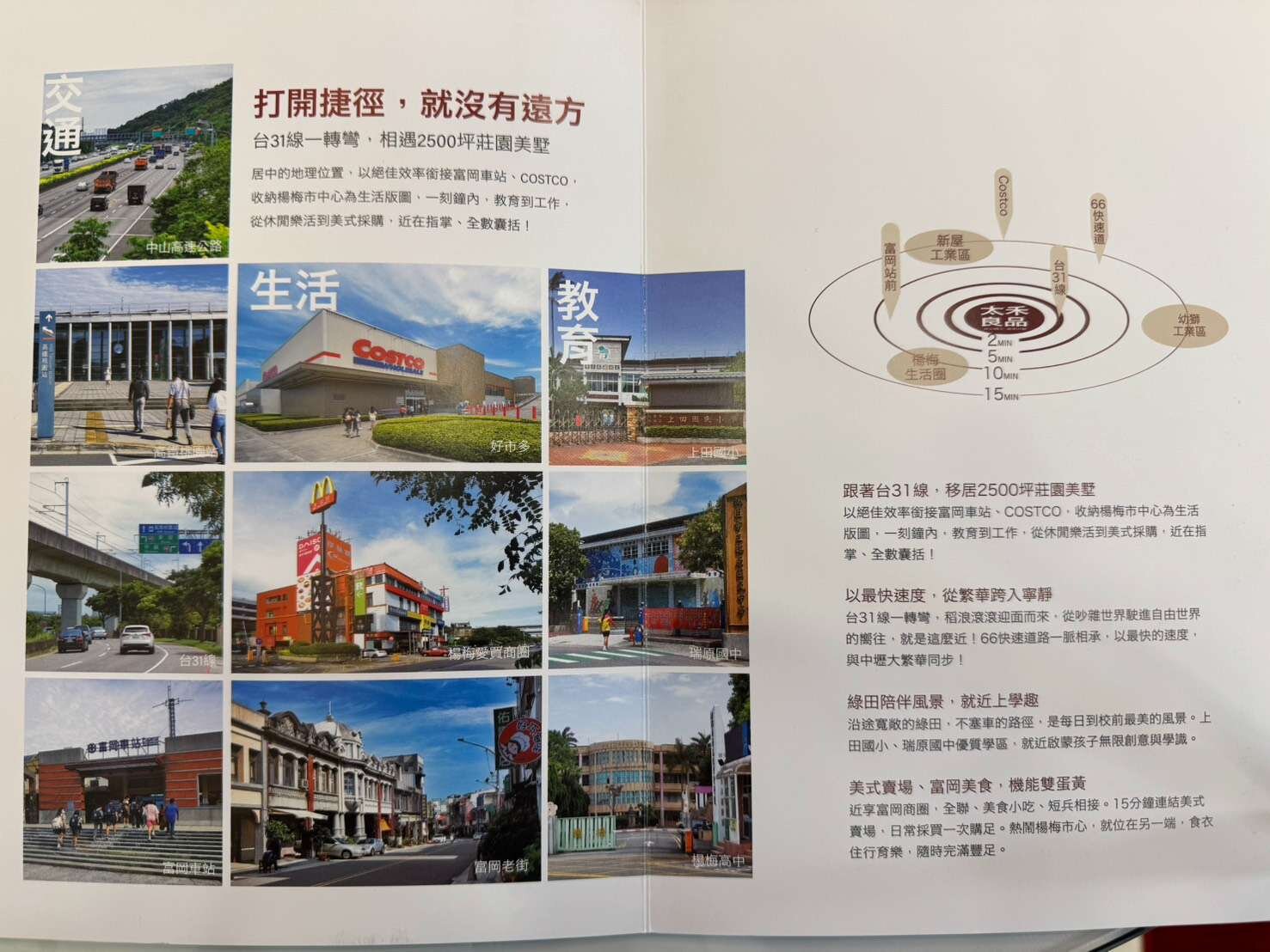 位居楊梅,富岡居中的地理位置,環境優雅,空氣清新,適合人居的好所在. 10-15分鐘之內可達好市多美式賣場,全聯以及美食小吃也近在咫尺. 上田國小,瑞原國中優質學區是本區的近鄰. 交通方便四通八達,中山高速公路,61西濱快速道路,上下都十分便捷.