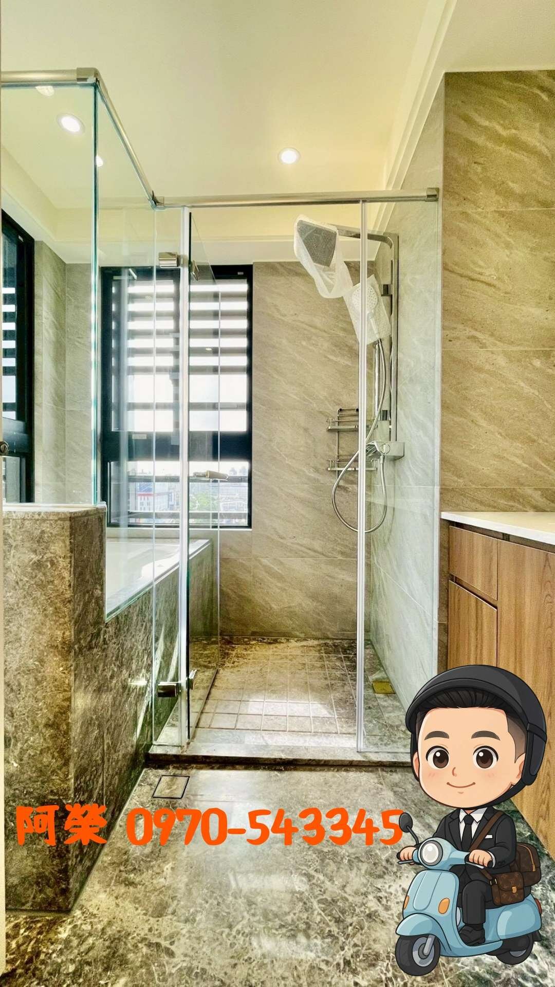 🍎適合居住的三面採光空間,除了乾濕分離的浴室空間,雙衛浴開窗,高規格四件式主衛浴配置浴缸,完整