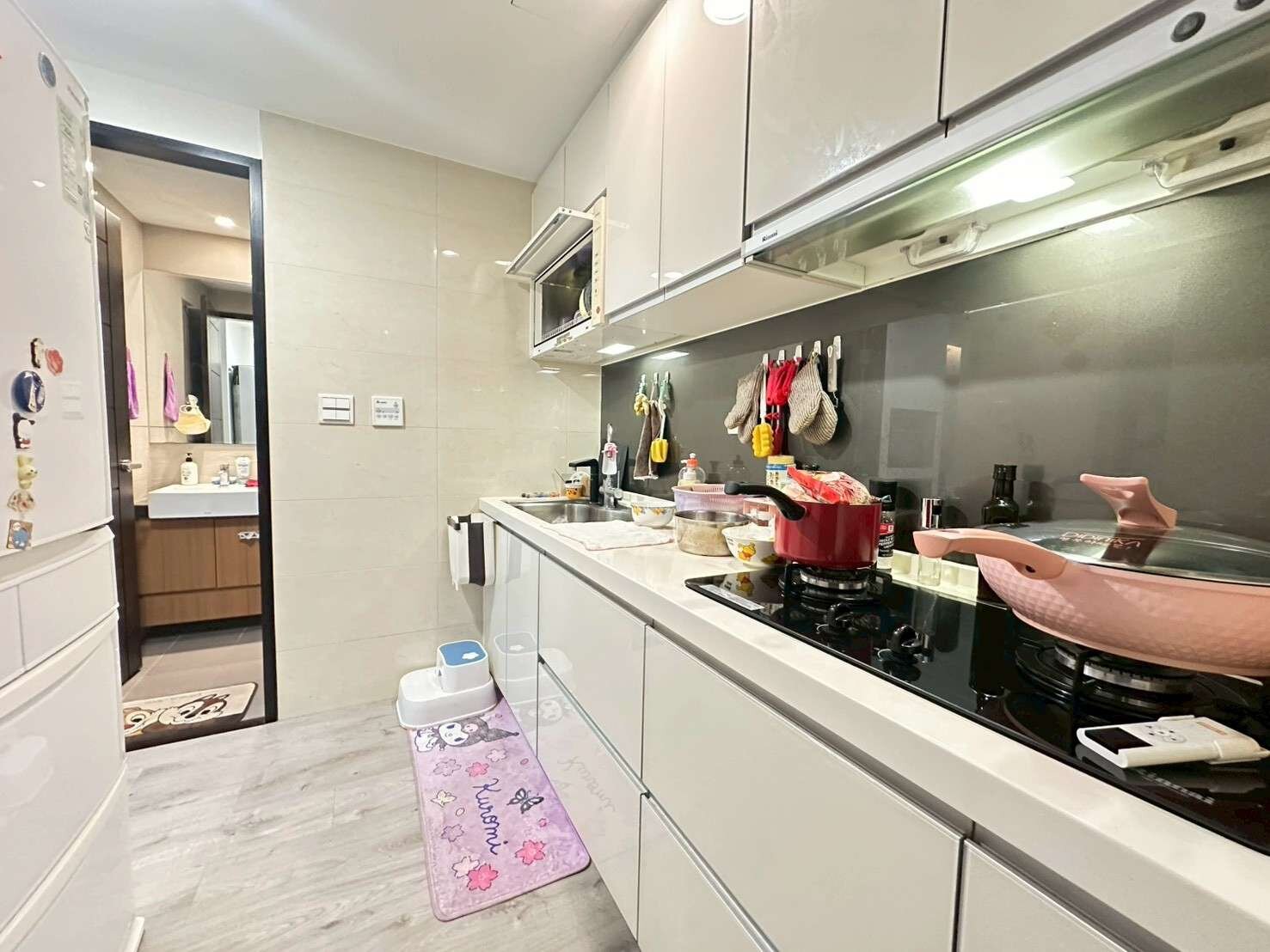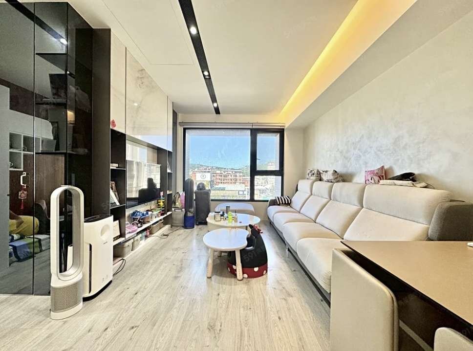 備註: (1)玄關落塵區波隆毯 (2)電視牆面,電視櫃全大理石 (3)全木工裝潢 (4)客廳換坐向 (5)兩間房間及客廳玻璃貼隔熱紙 (6)陽台鋁窗 (7)客廳及主臥牆面都是使用馬來漆(可方便清潔) (8)客衛乾溼分離有貼防爆膜