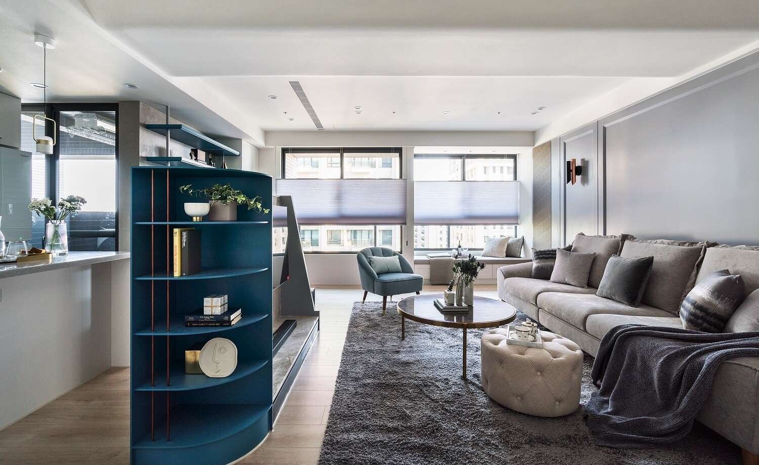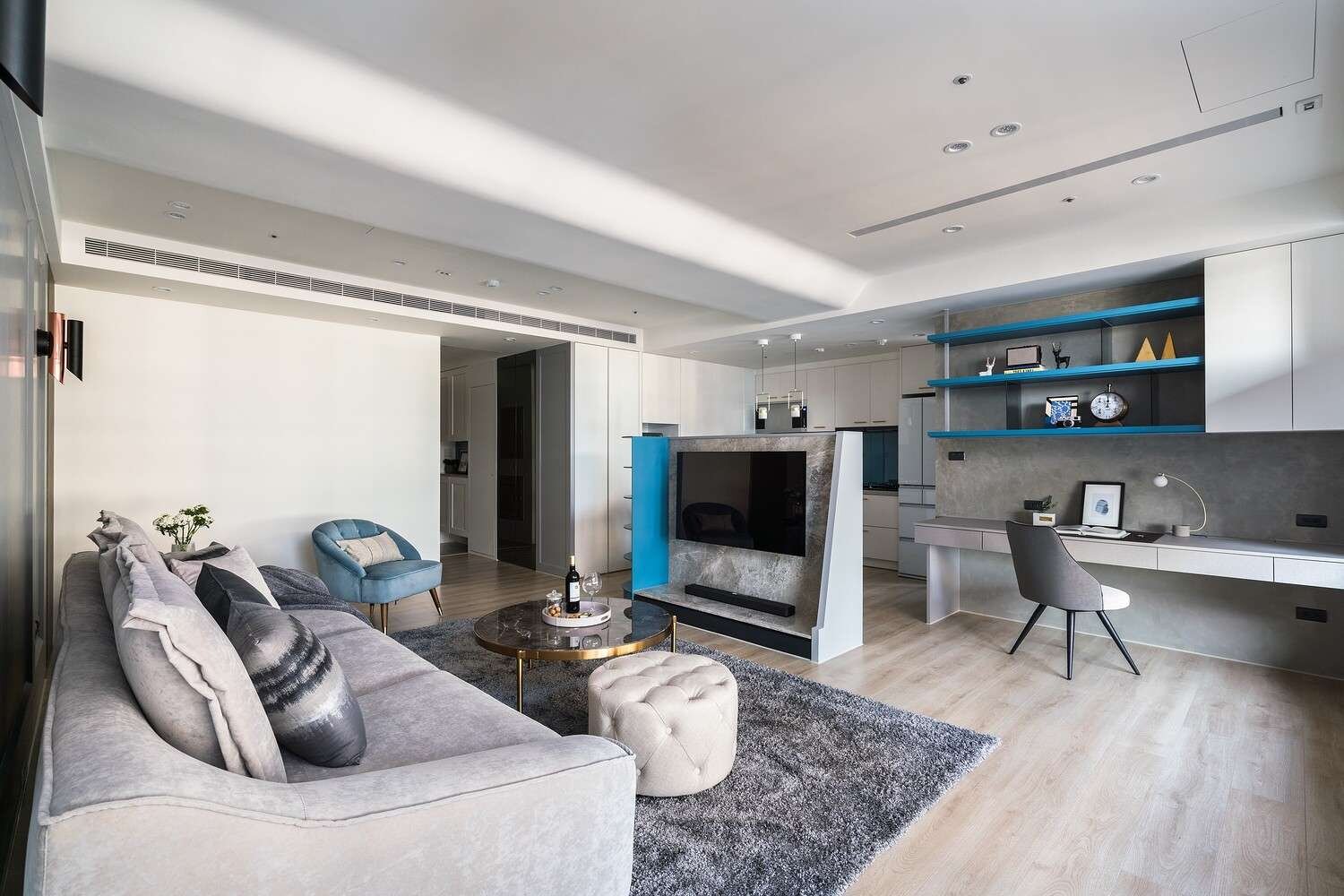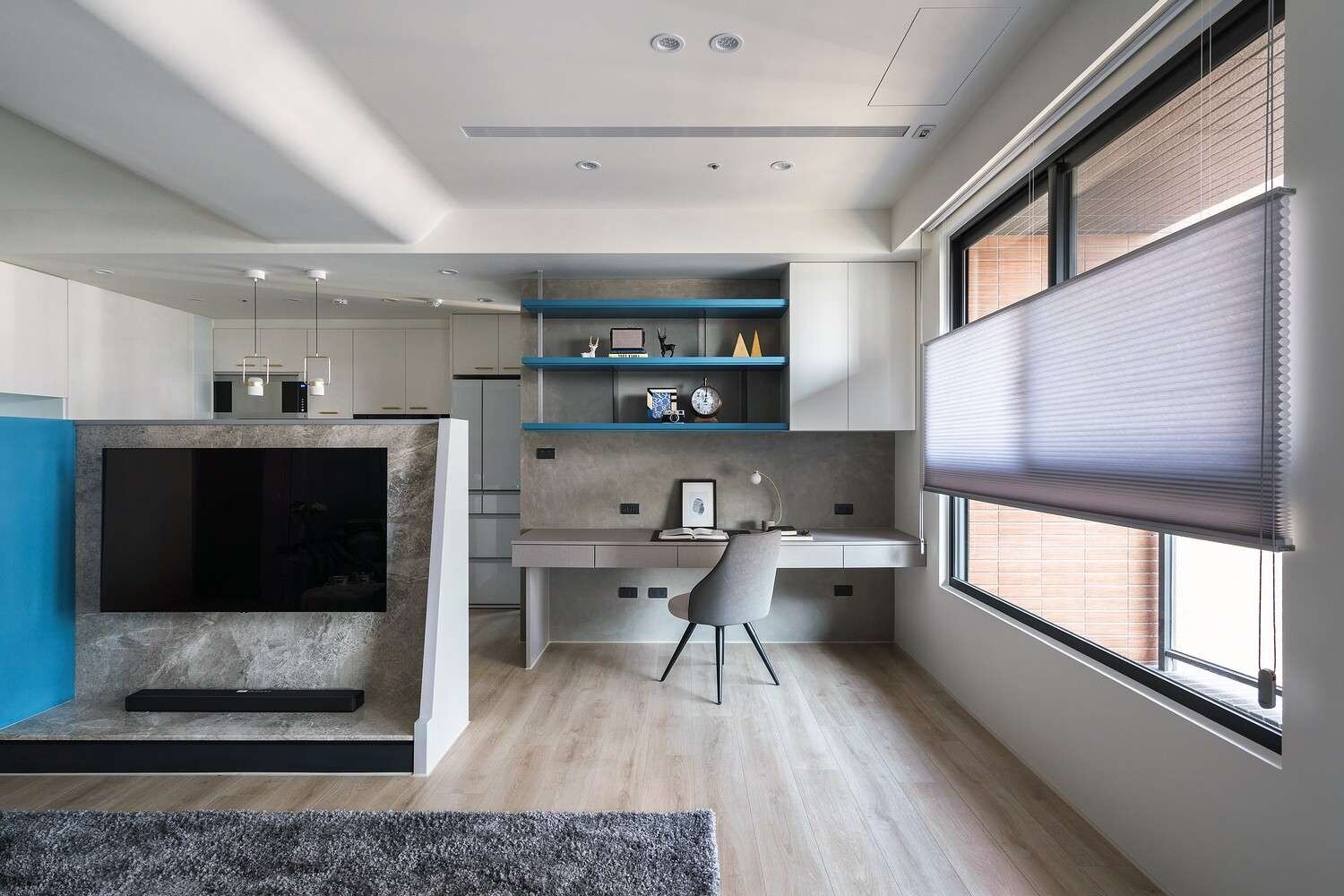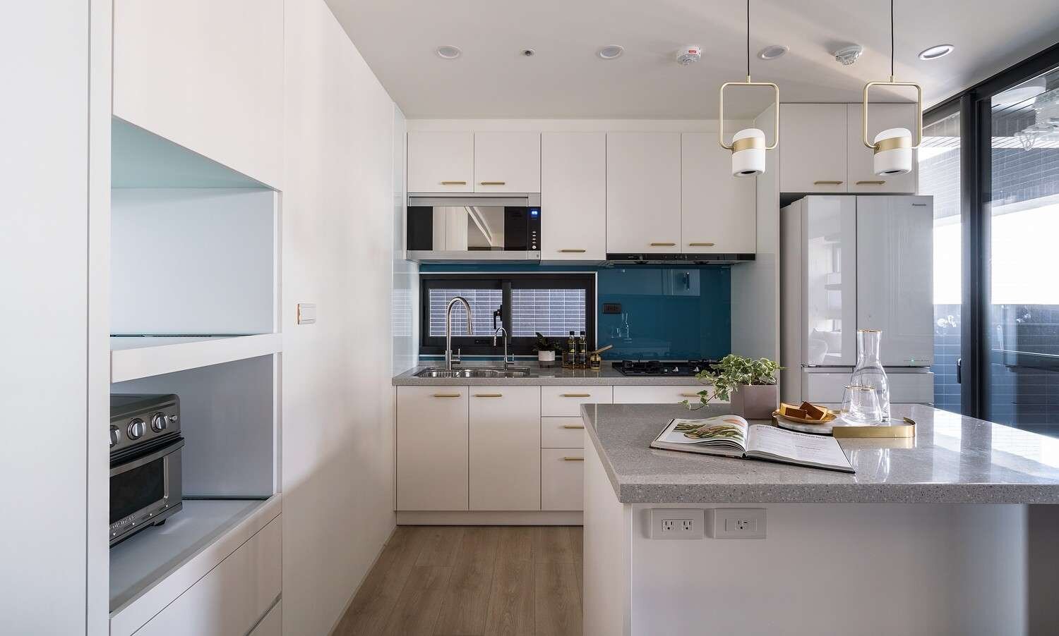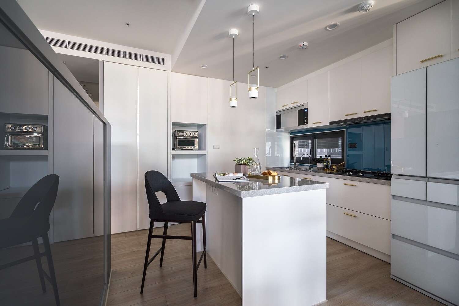 🍴一字型廚房搭配中島,洗切煮動線順暢不交錯。 電器櫃內嵌收納,使用更順手。