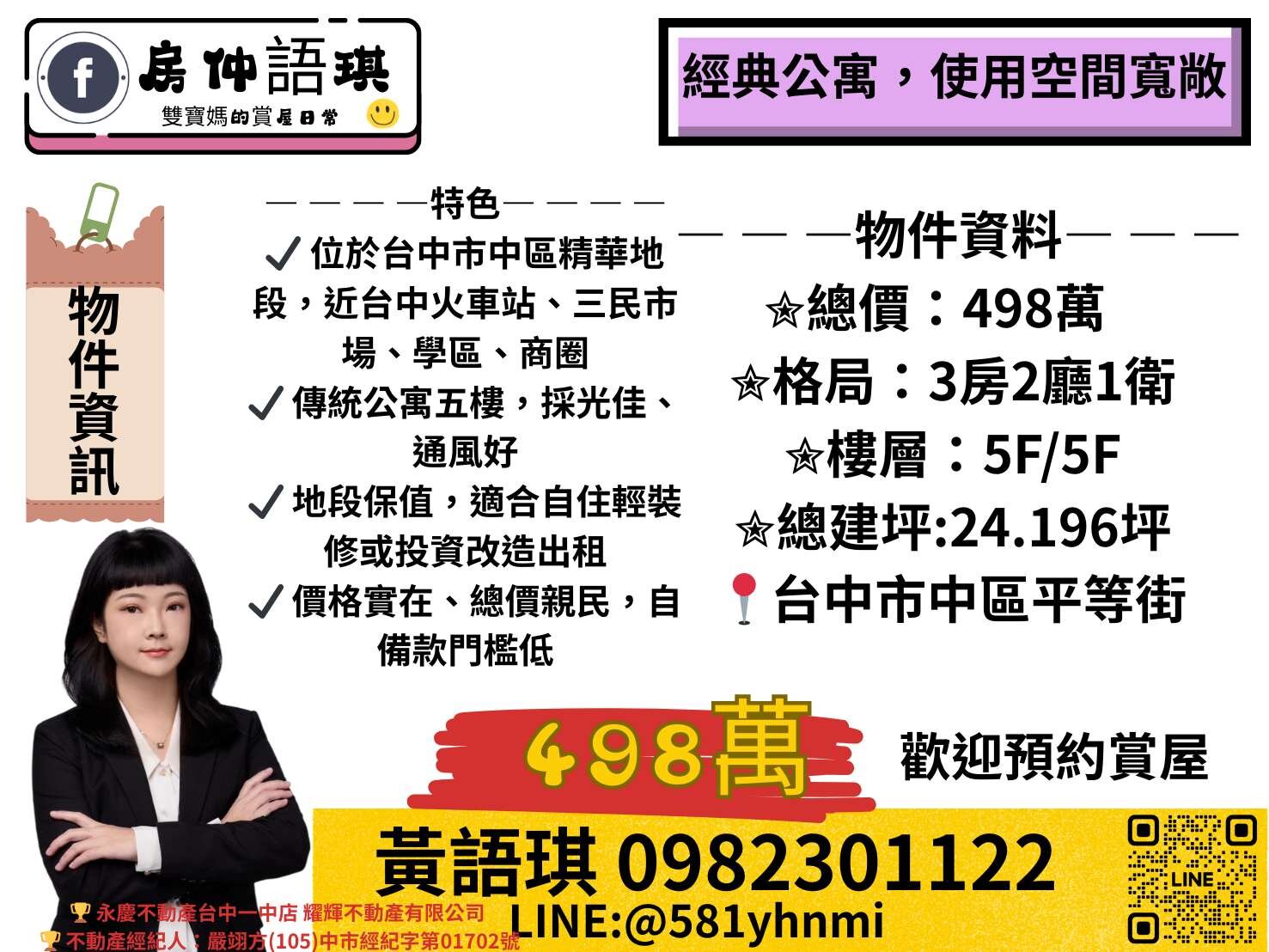 ✔ 位於台中市中區精華地段,近台中火車站、三民市場、學區、商圈 ✔ 傳統公寓五樓,採光佳、通風好 ✔ 地段保值,適合自住輕裝修或投資改造出租 ✔ 價格實在、總價親民,自備款門檻低