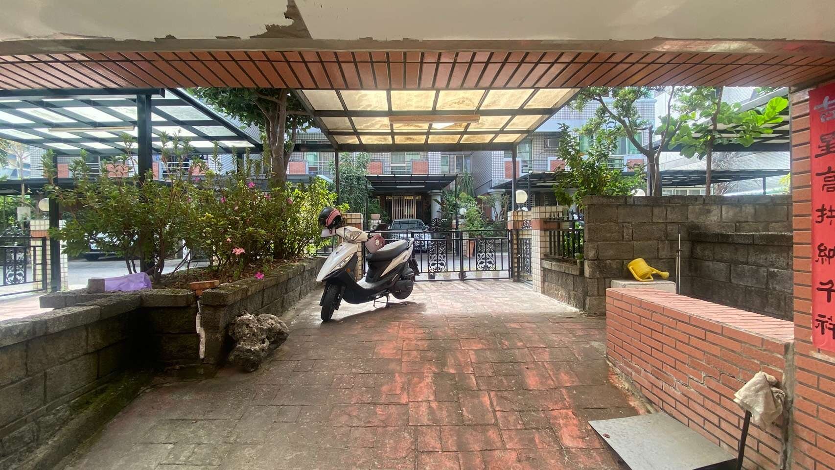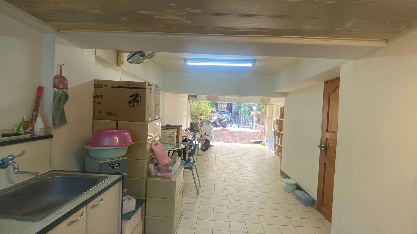 3- 一樓車庫可停2台車,還有間儲物間方便收納,前後都有路可以進出。