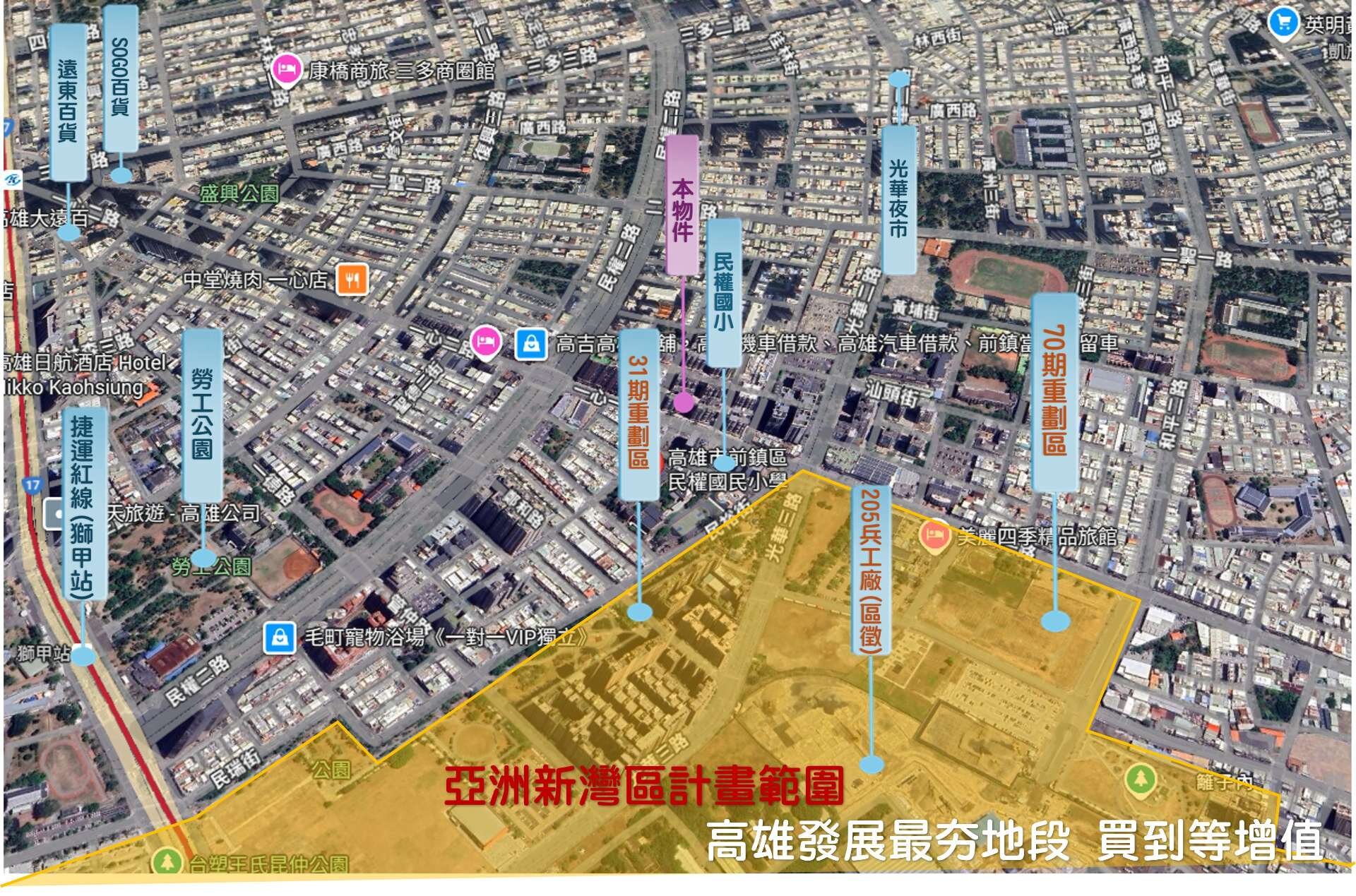 ==買屋買地段==高雄最夯亞灣區計劃就在旁邊==70期重劃區==205兵工廠區段徵收==商貿、住宅、公園==發展潛力無限