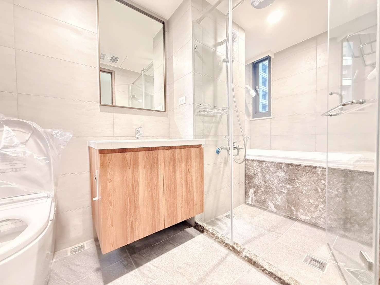 全新完工的三房,擁有平面電動車位,主臥室設有大浴缸。