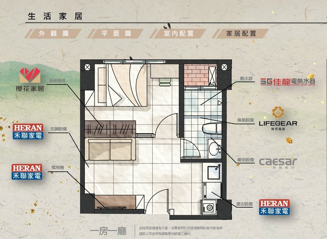 二-五樓(8套):一房一廳大套房