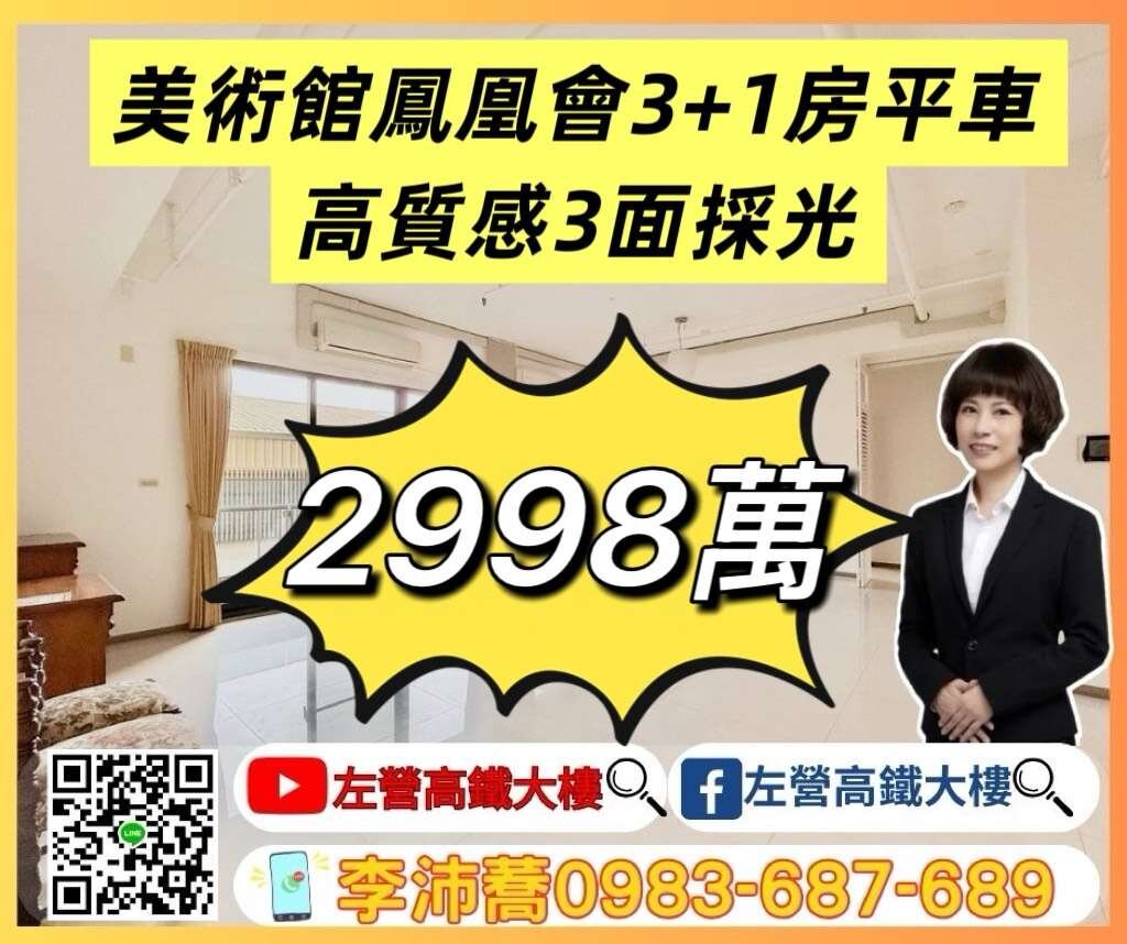 美術館鳳凰會高質感三面採光3+1房超靓平車