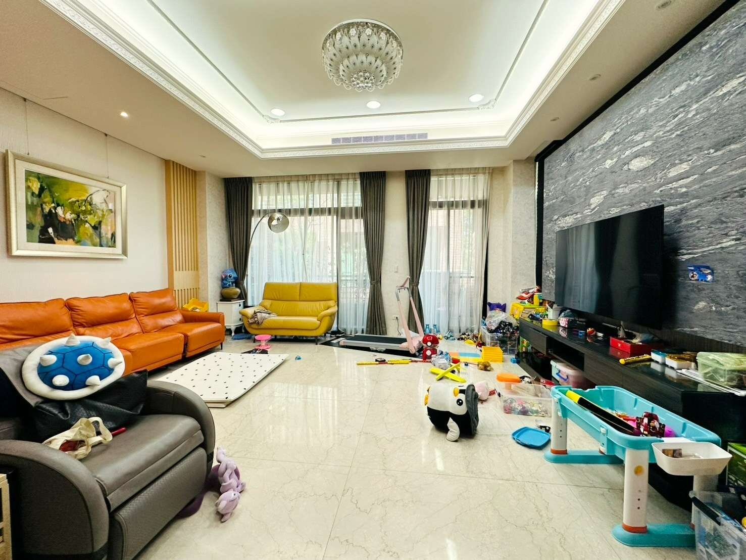 7.5 米大面寬設計,可停雙車,室內尺度大器,動線流暢。屋主用心裝潢,空間方正寬敞,彈性好運用,輕鬆滿足三代同堂或高端家庭居住需求。