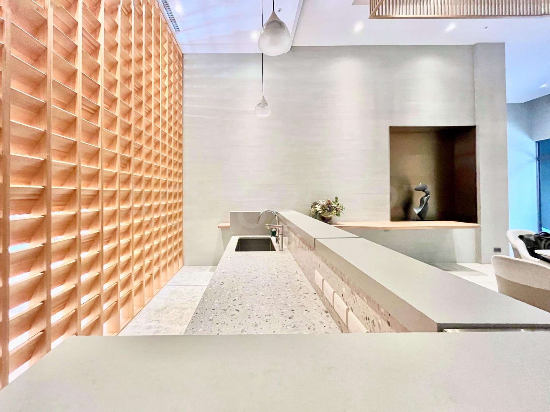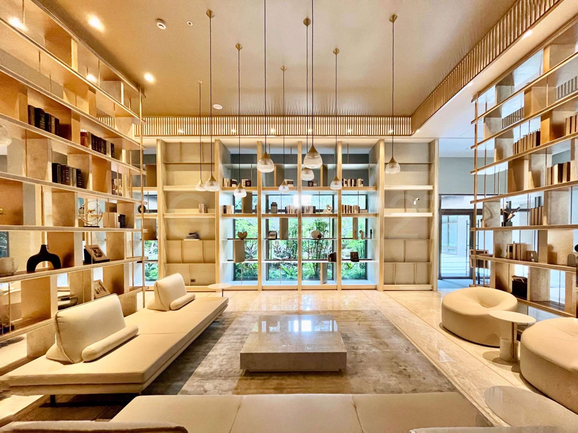 (1).基地2600坪森林秘境,外觀垂直綠化建築,由環中東路退縮12至40米,打造含生態池的原始森林景觀,將車流噪音隔絕在外。規劃4棟建物,單層8戶配3部電梯,戶戶皆具備2面採光與良好通風,並配備BWT軟水系統及美學鋼木門