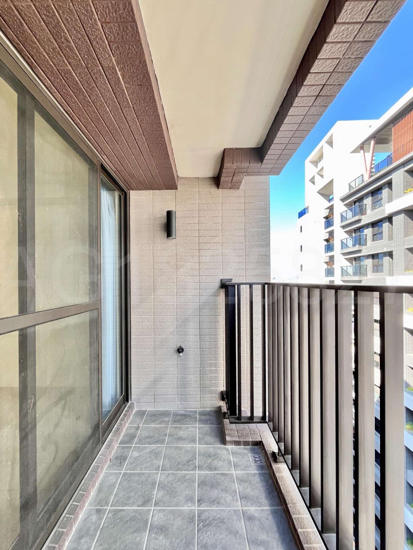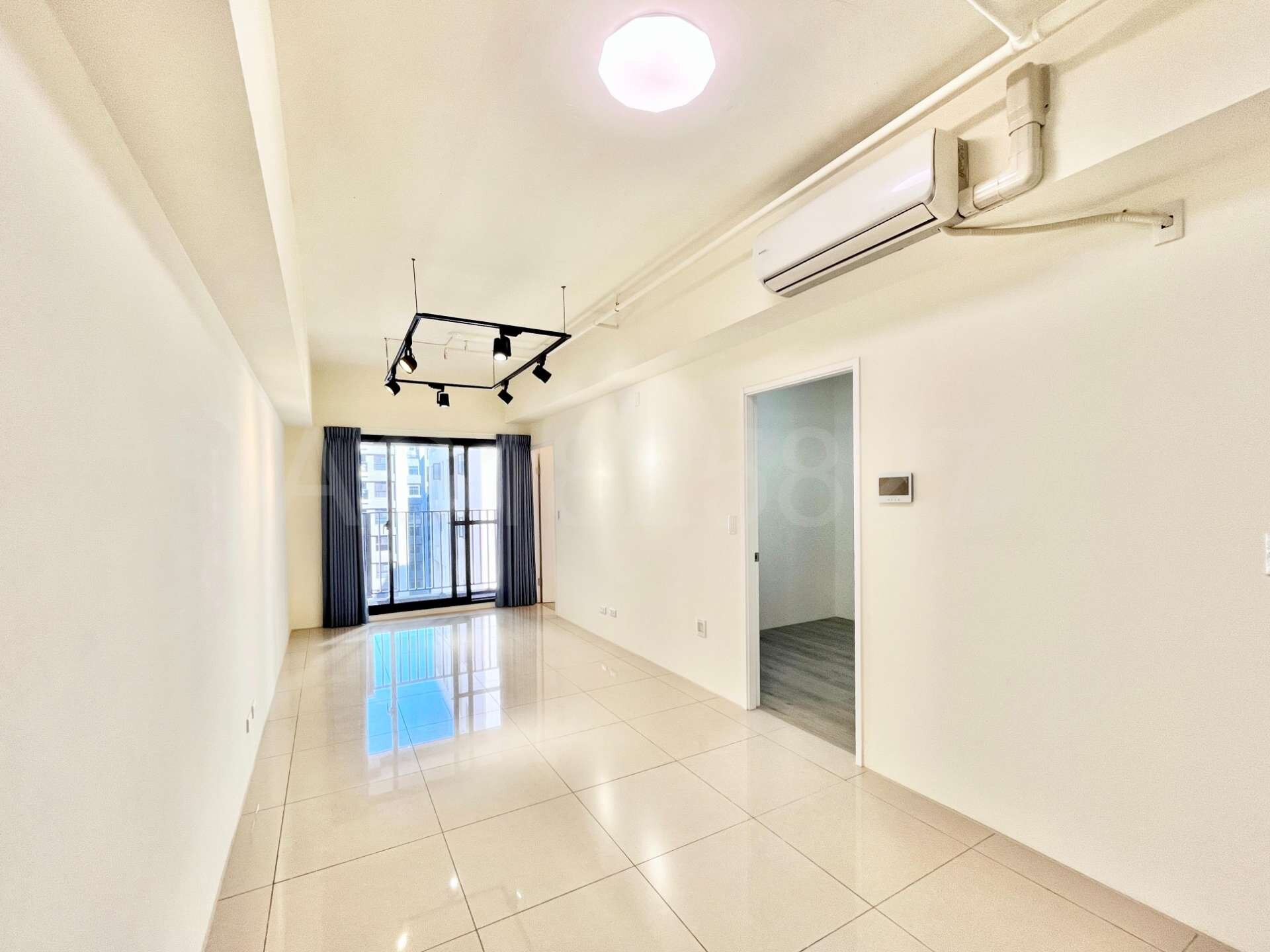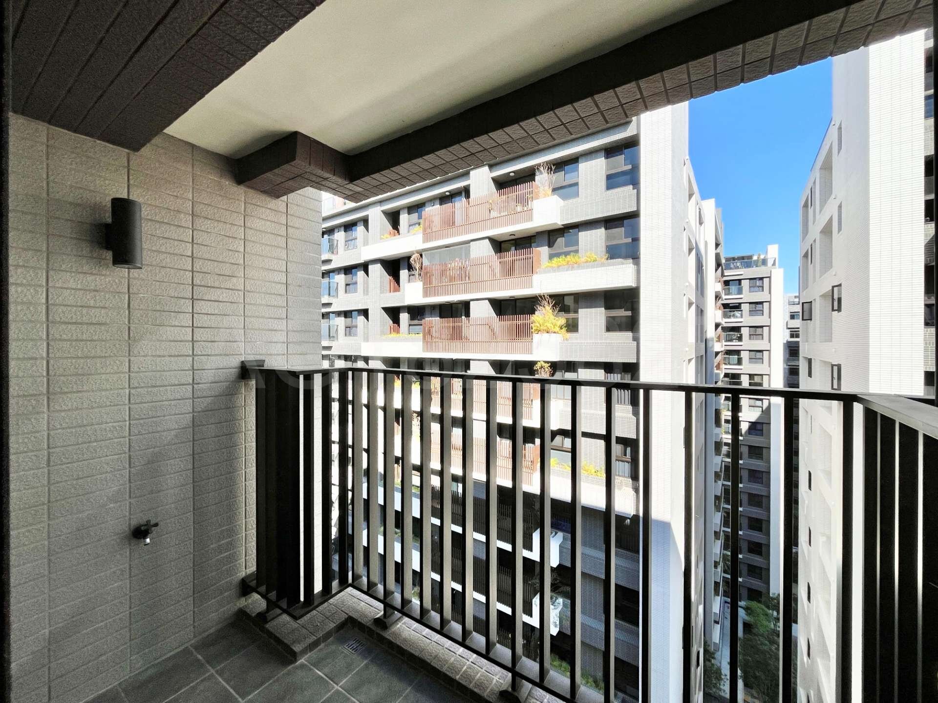 (2).格局方正好規劃,南北向通風採光佳,前陽台面執美有固定視野棟距(非74號面向),客廳使用80 *80拋光石英磚,兩間房間皆鋪設耐磨木地板,房間皆採深窗設計。