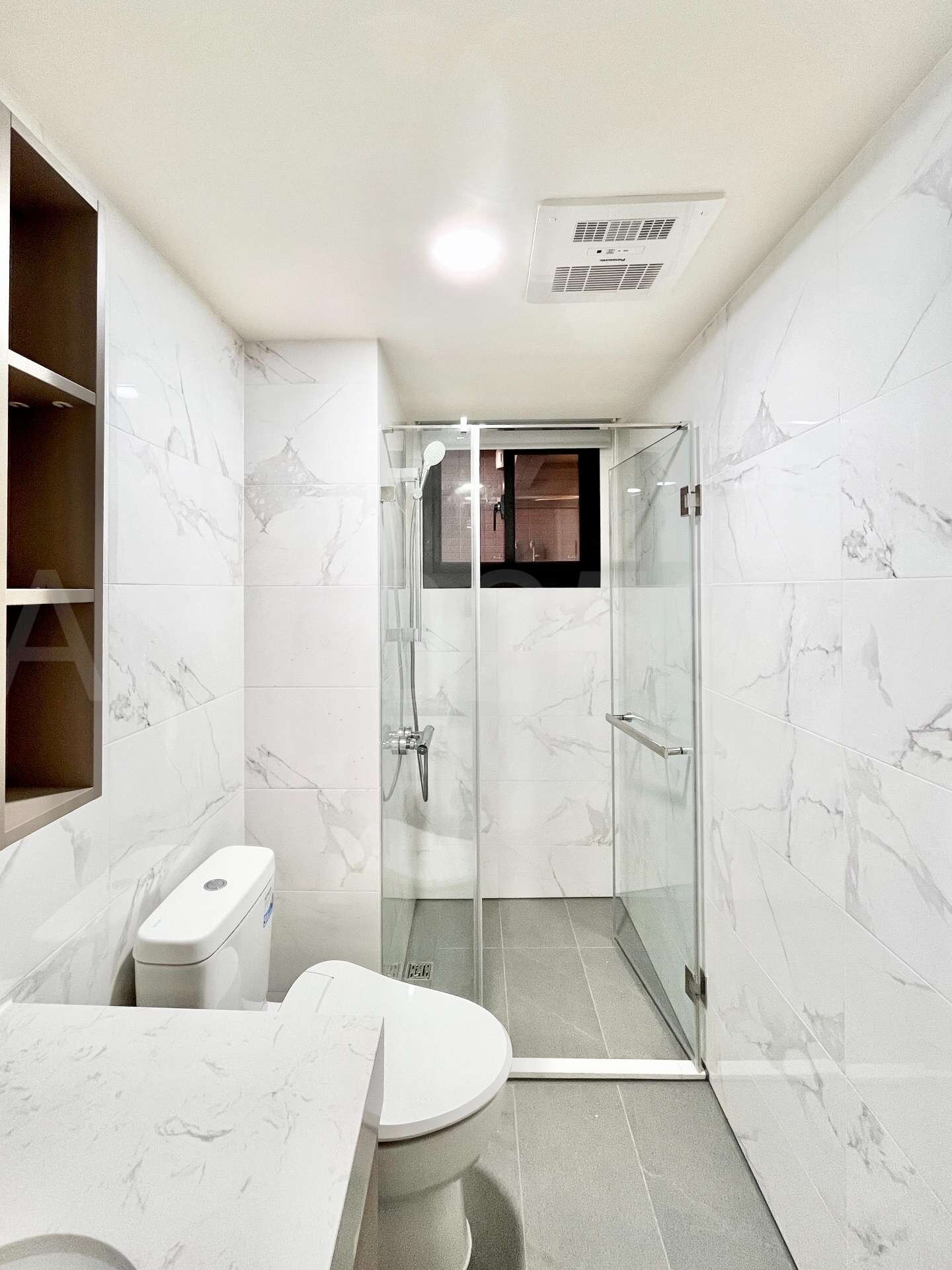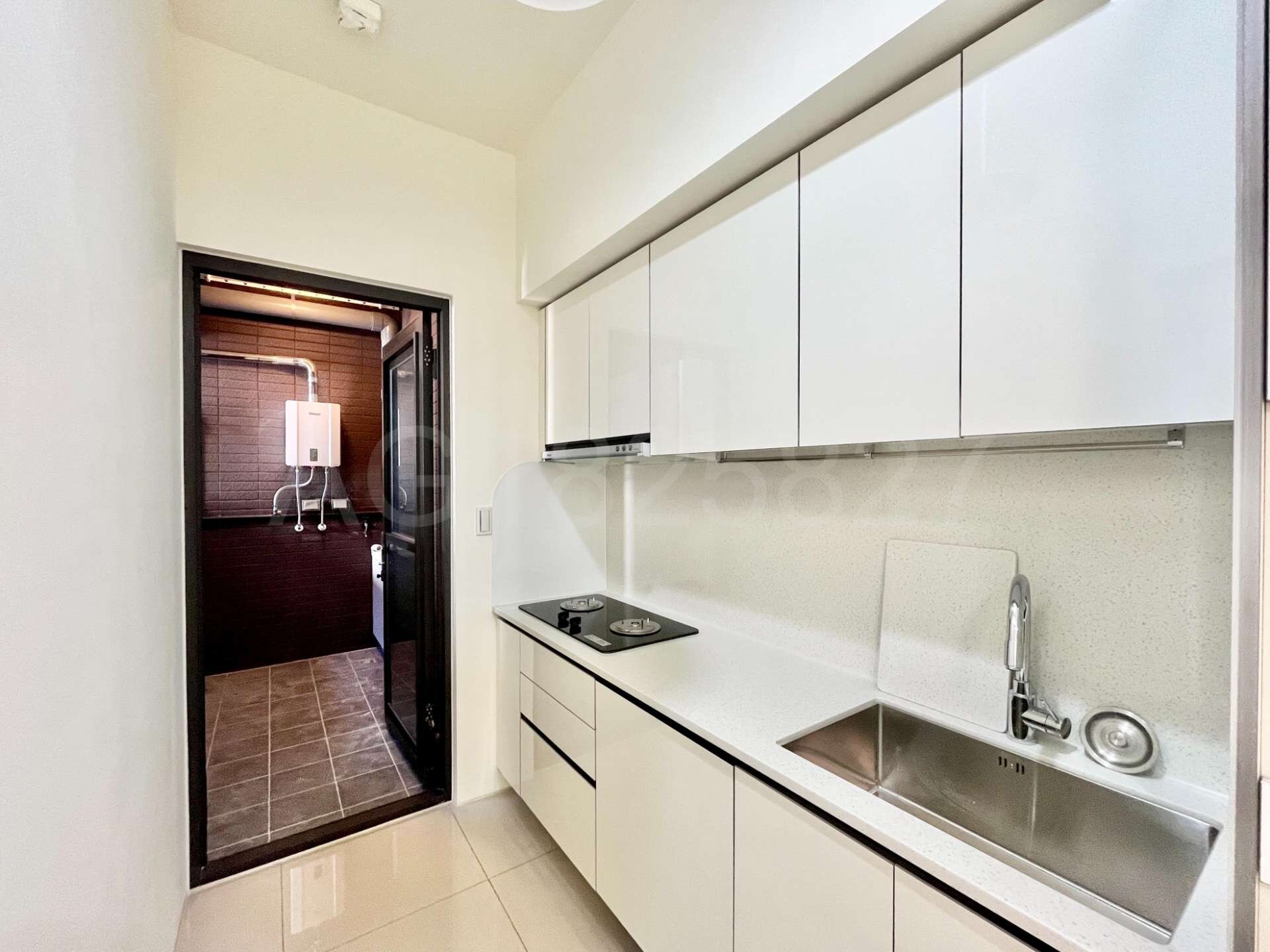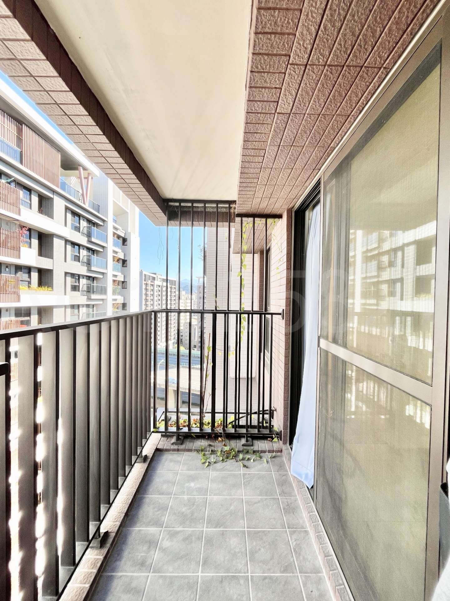 (2).格局方正好規劃,南北向通風採光佳,前陽台面執美有固定視野棟距(非74號面向),客廳使用80 *80拋光石英磚,兩間房間皆鋪設耐磨木地板,房間皆採深窗設計。