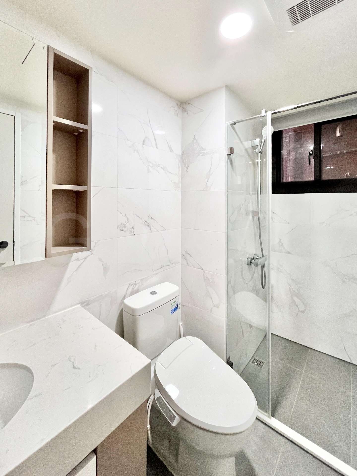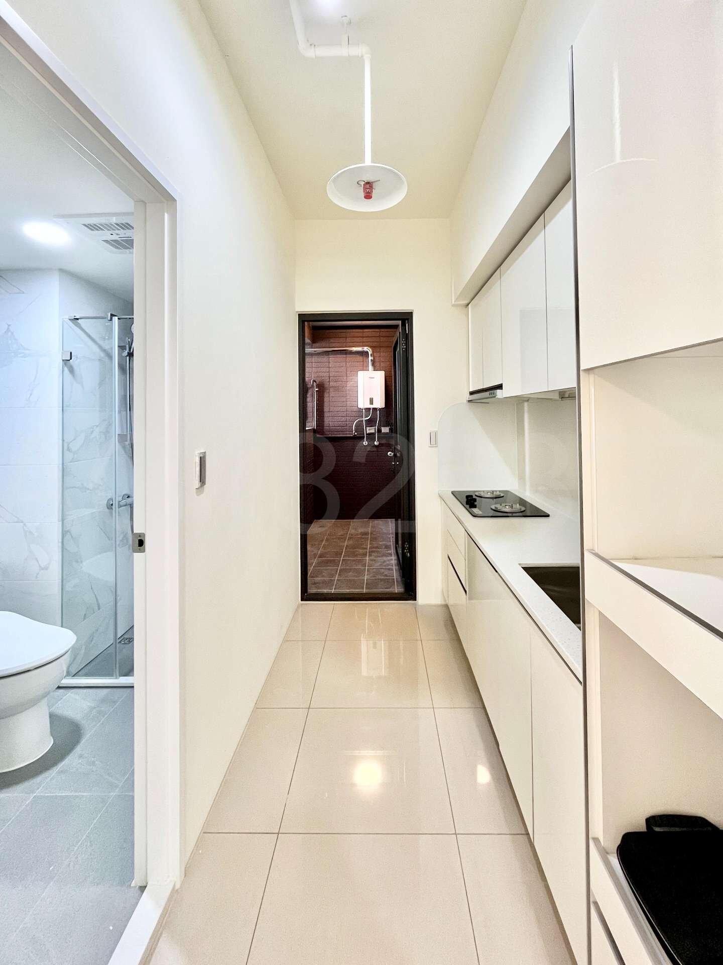 廚房使用林內雙口爐跟排油煙機,使用BOSCH烤箱,衛浴三件式,獨立淋浴間使用KOHLER 面盆及馬桶,附國際牌三合一冷暖風機。後工作陽台有獨立的洗曬空間,附流理台。附B1電梯口大車位。