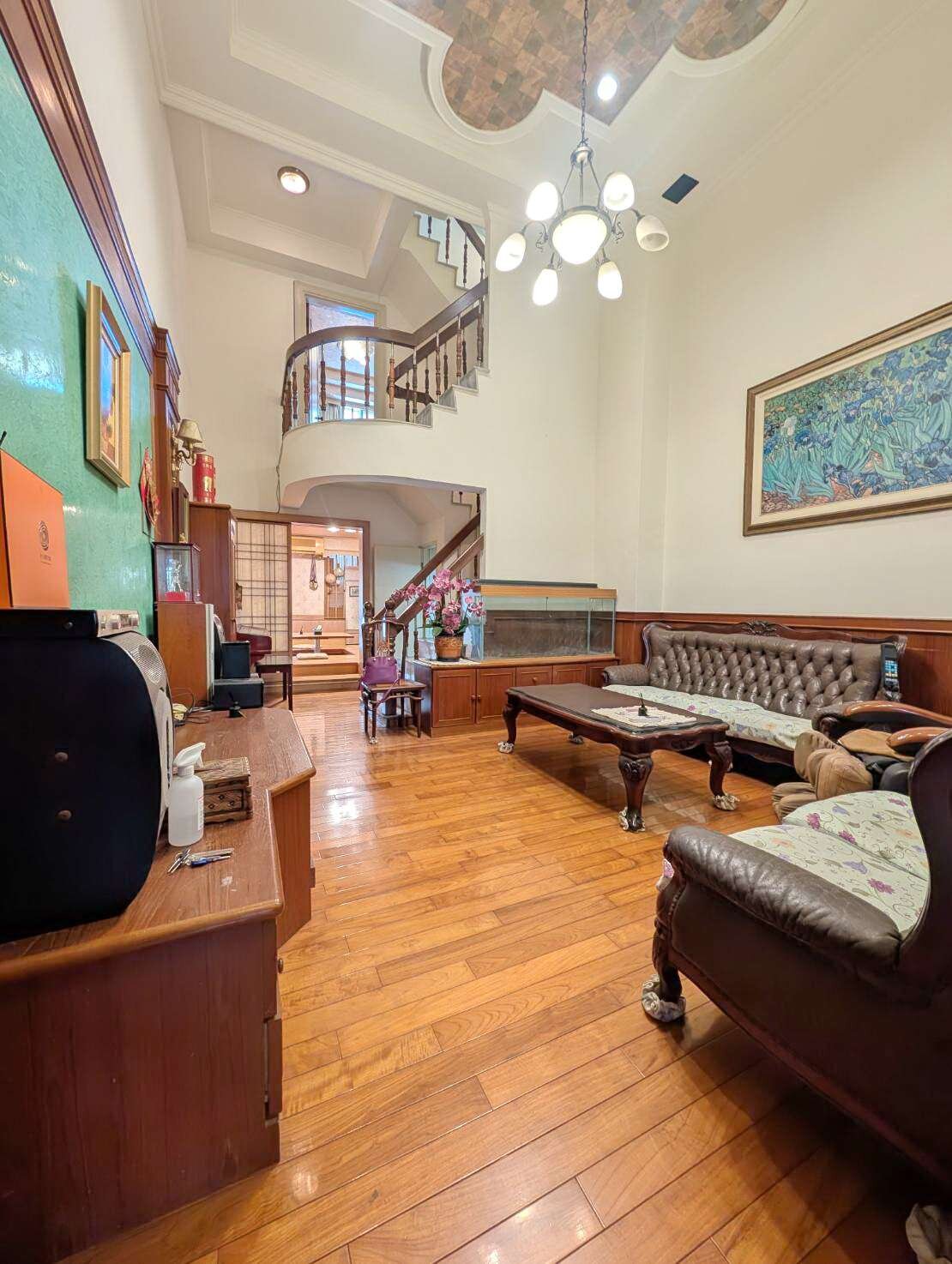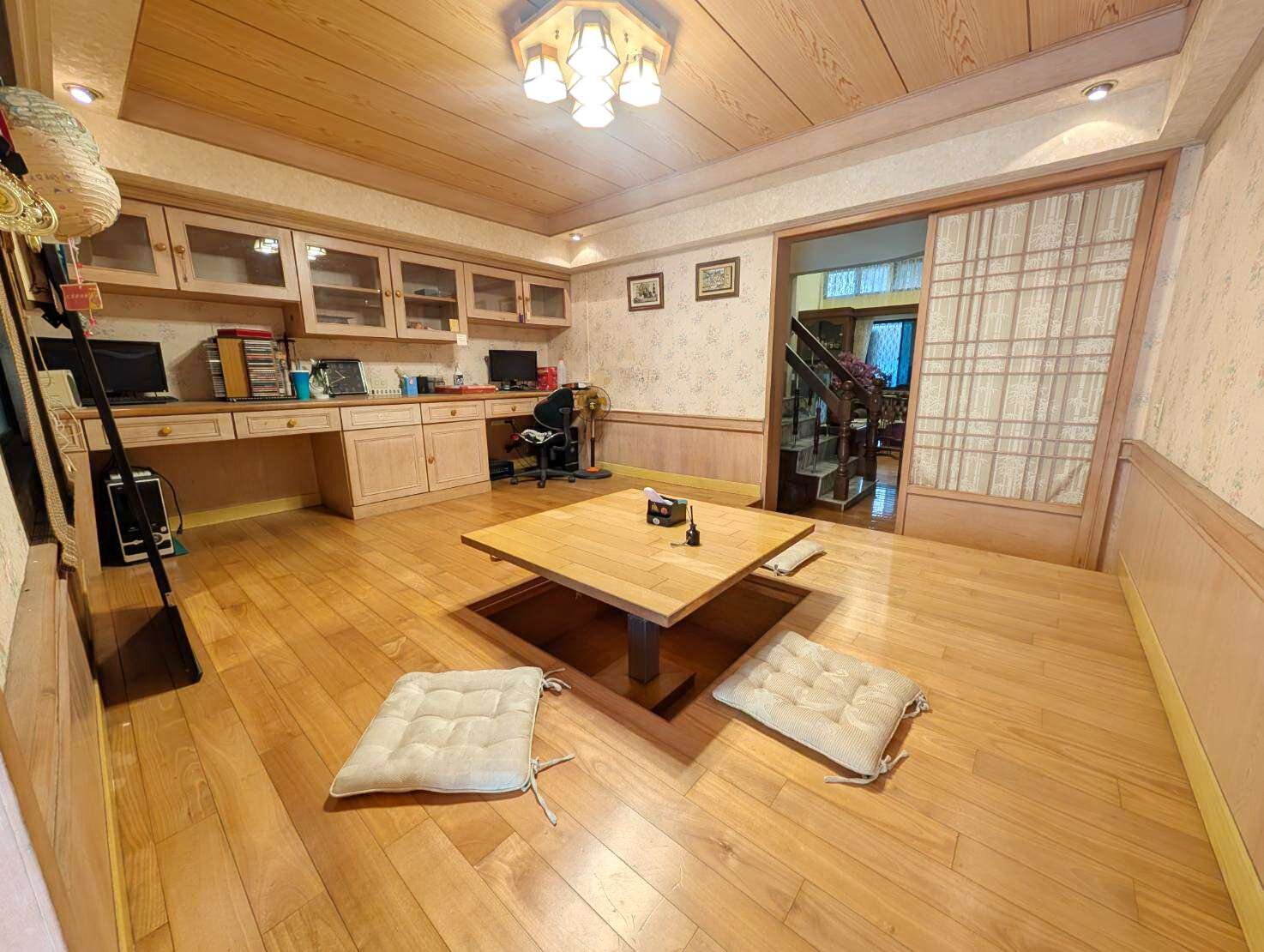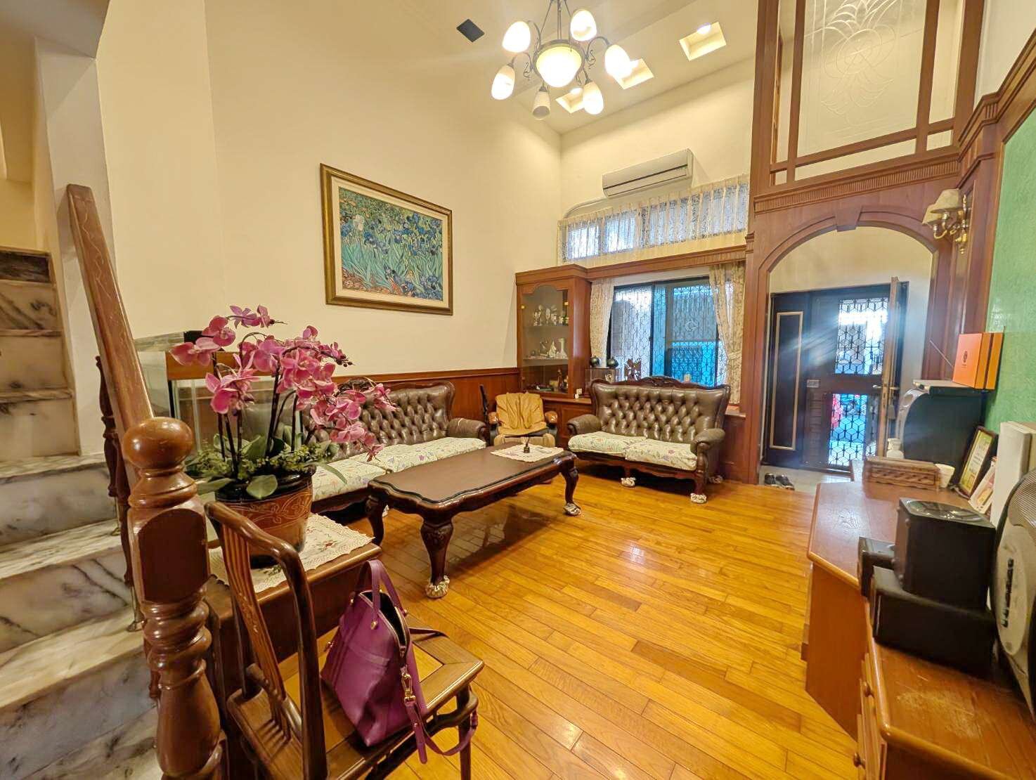 位於屏東市榮總醫院旁.近未來高鐵特區.距高屏大橋約8分鐘. 屋主不惜重金裝潢.採用復古原木系列.歐式古典風.屋況保持良好. 1樓挑高客廳無壓迫感.多功能合室.可當孝親房.有隱藏式電動泡茶桌子 整棟房子牆壁於113年前重新粉刷過 近大武商圈.店家林立.生活機能佳. 前後路通(靜巷).自有車庫.附近有租車場