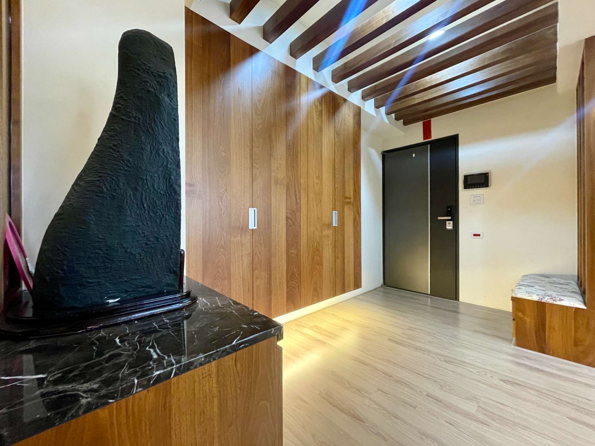 位於十期東山、軍功核心生活圈的【佳泰新麗馳】,輕屋齡住宅,坐擁便利機能與寧靜居住品質,是專為重視生活質感的家庭所打造的理想居所。 🔹 格局方正・通透明亮 主建物約32坪,3房2廳2衛,另有3個陽台,空間規劃實用不浪費。一梯兩戶,住戶單純,居住隱私佳。無限視野、採光極佳,回家就是放鬆。 🔹 設計師百萬裝潢・頂級建材 室內採用大理石裝潢,客製化吧檯設計,另規劃女主人專屬更衣間,質感與機能兼具。 廚房配備高級人造石檯面、嵌入式烘碗機; 臥室鋪設羅賓木地板; 衛浴採用TOTO系列,主臥另附暖風機; 鑄鋁防火門搭配電子鎖,安全再升級。 🔹 交通便利・生活機能強 🚗 上台74線只需1分鐘,近74快速道路與機捷,通勤南北超便利。 🛍 鄰近軍功市場、東山黃昏市場、好事多,日常採買一次滿足。 🏫 周邊有軍功國小、建功國小、東山高中,教育資源完整,適合有學齡孩童的家庭。 🌳 步行可至軍功公園,享受綠意與靜謐生活。 🔹 車位配置佳 附機上車位,另有一個固定機車位,休旅車也能輕鬆停放。 車道一進一出,動線安全無虞。