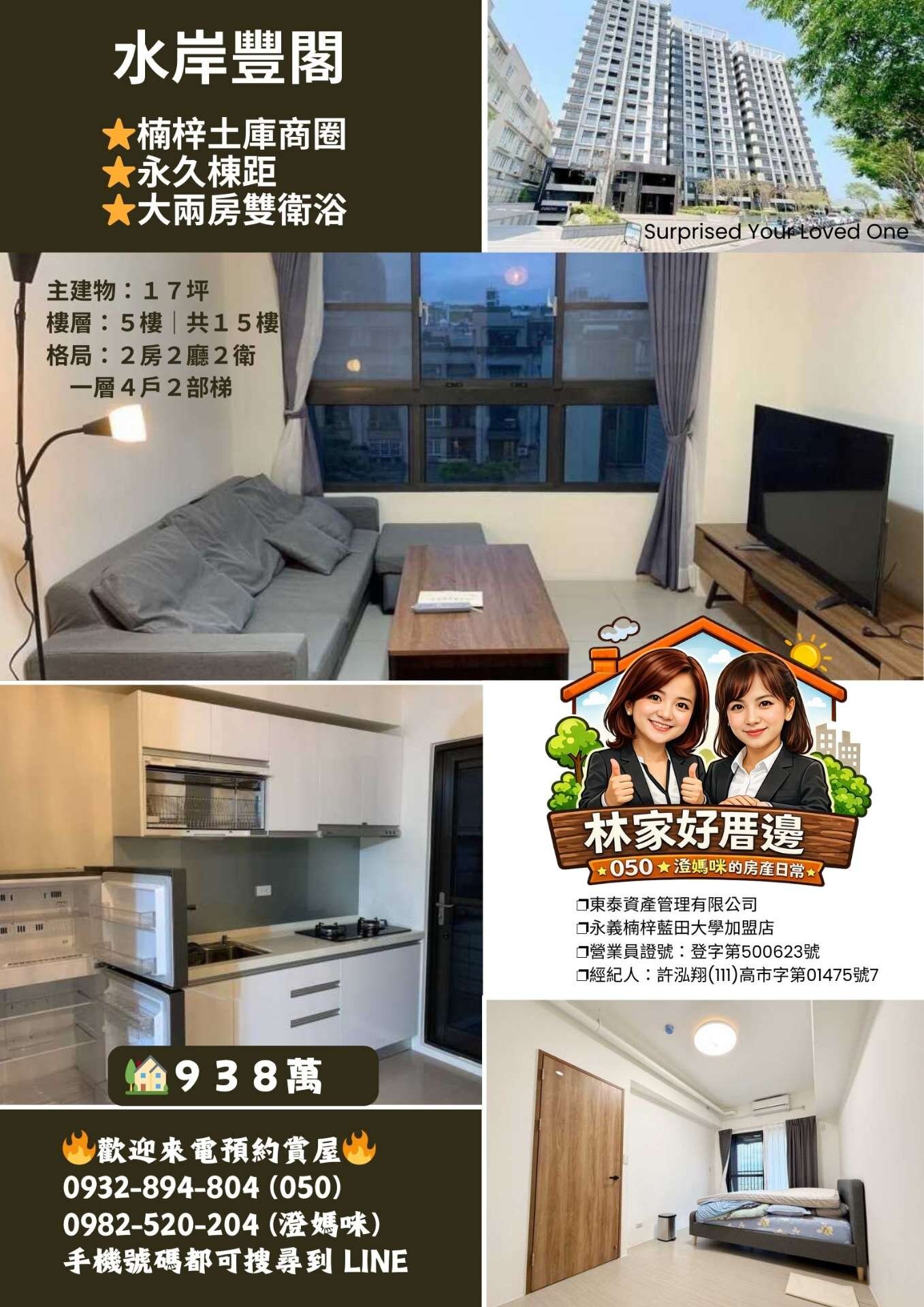 楠梓土庫商圈#水岸豐閣#永久棟距#大兩房雙衛浴