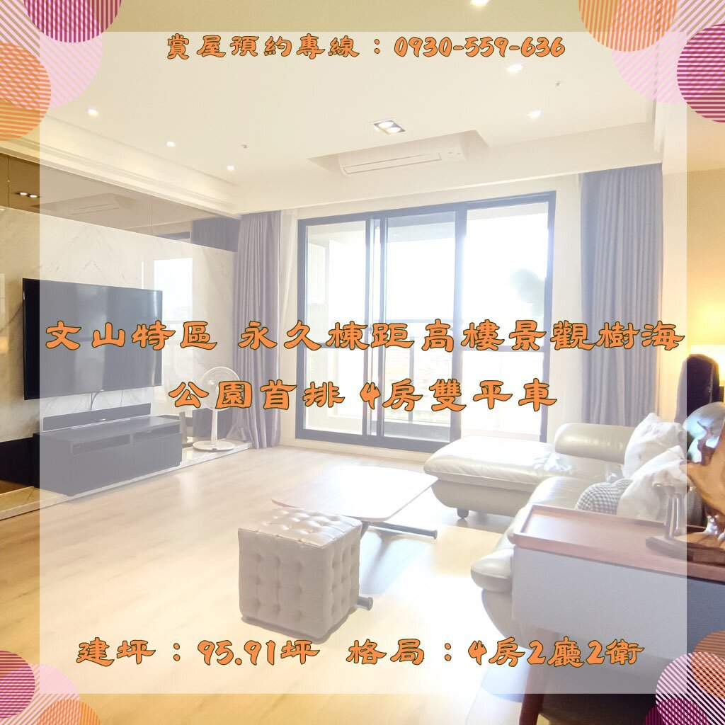文山特區 永久棟距 高樓景觀樹海公園首排4房雙平車