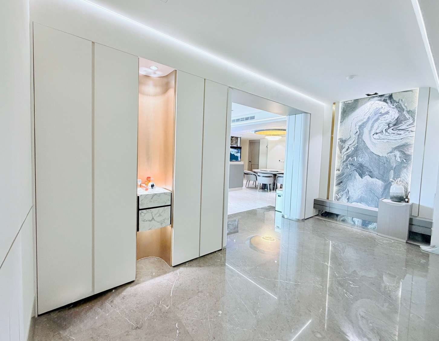 2.約兩年前屋主斥資千萬.全屋拆除舊式裝潢,以沉著內斂的大器感,俐落線條.光影層次打造全新現代奢雅風格.動線流暢兼具空間感.收納.實用機能型的高端宅