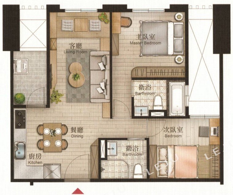 💖格局:2房2廳2衛1陽
