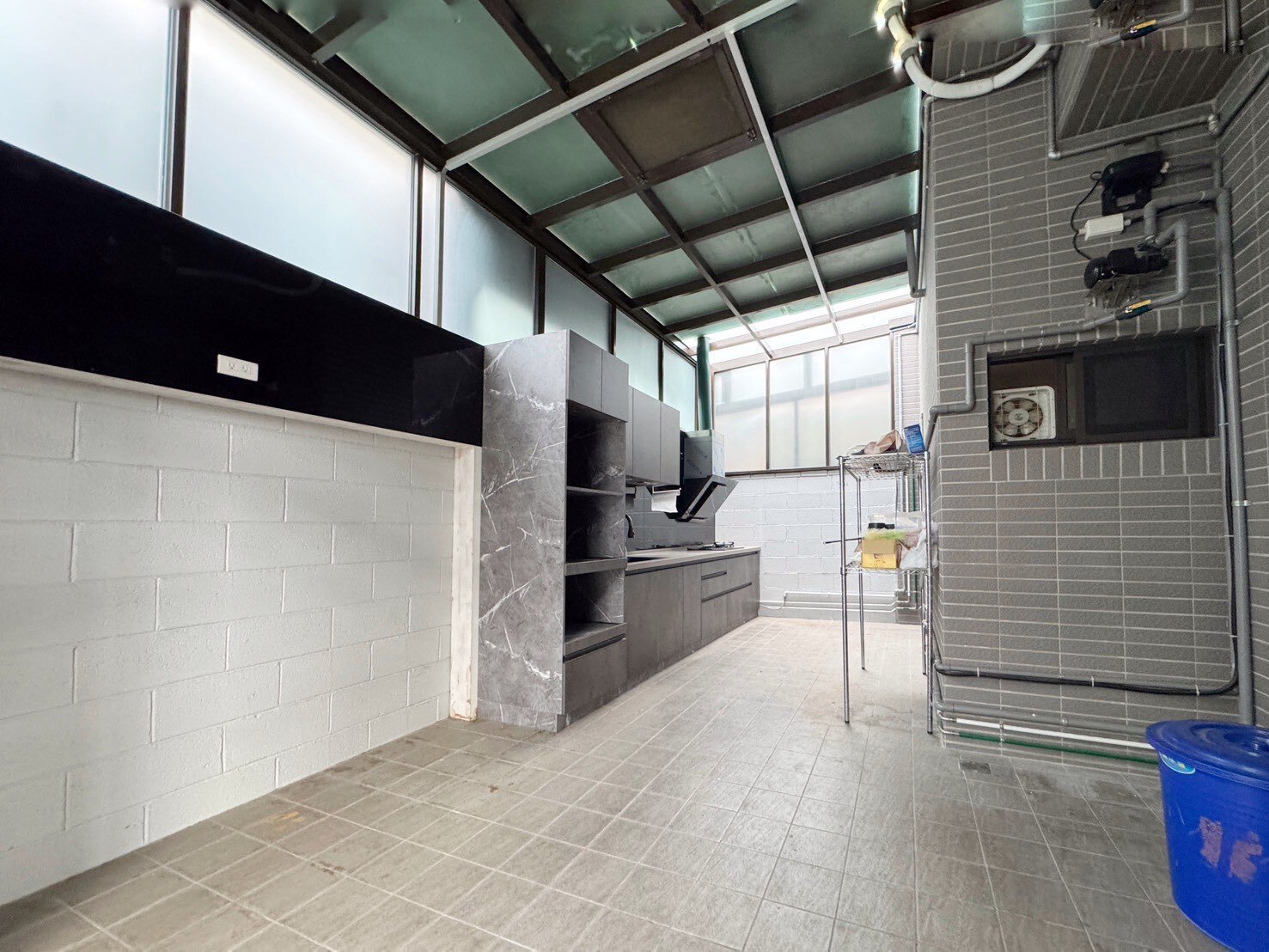 💁♀️一樓後陽台及後側院未登記產權增建約22坪、有搭採光罩、作為室內空間!可做小孩遊戲室、或是健身空間、工作室! 廚房移至後陽台、客廳空間非常大!