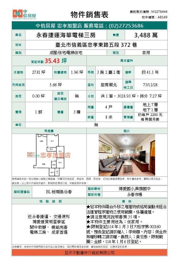買屋賣屋請指名 中信房屋復興民權加盟店【巨大不動產仲介經紀有限公司】