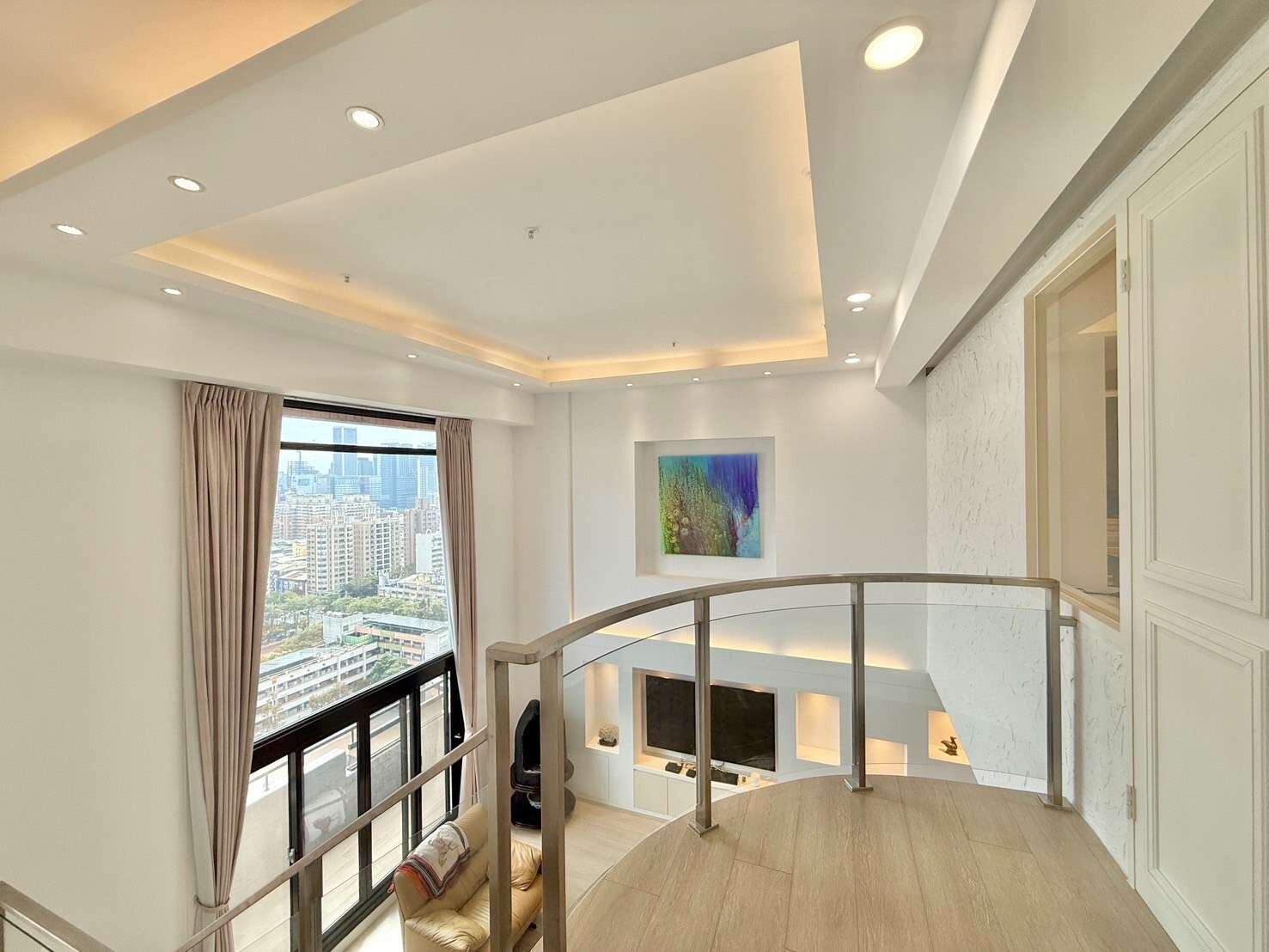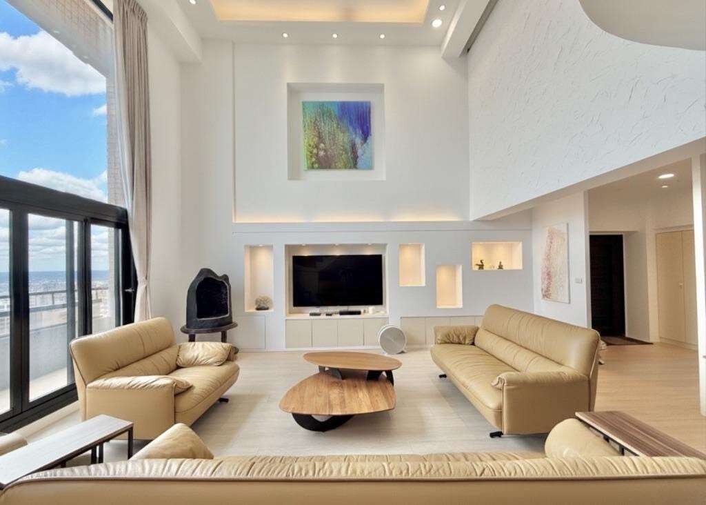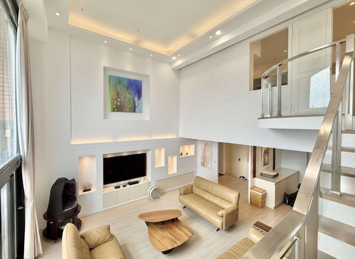 ✨ 22樓高的樓中樓設計,大型挑高落地窗框出藍天白雲,如同每日打開一幅動態風景畫。