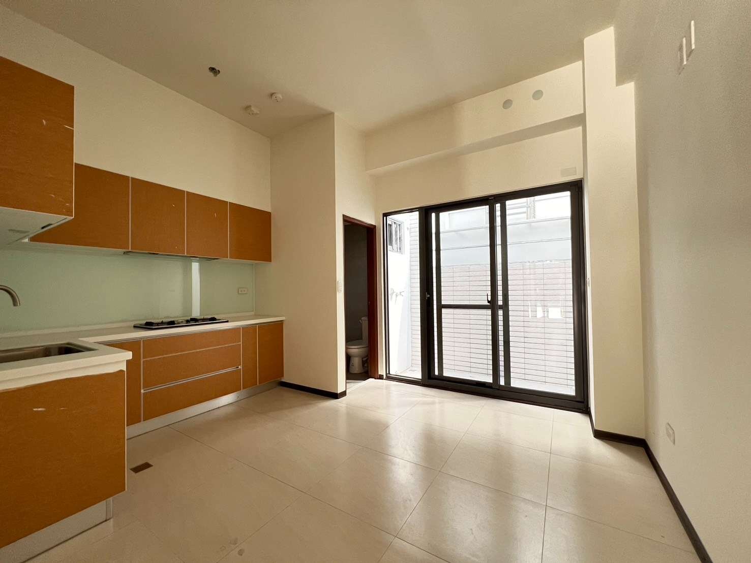 一樓有客廳與用餐+廚房區+1衛浴空間+1小陽台,空間方正好利用