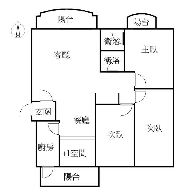 格局:3+1房/2廳/2衛浴/3陽台