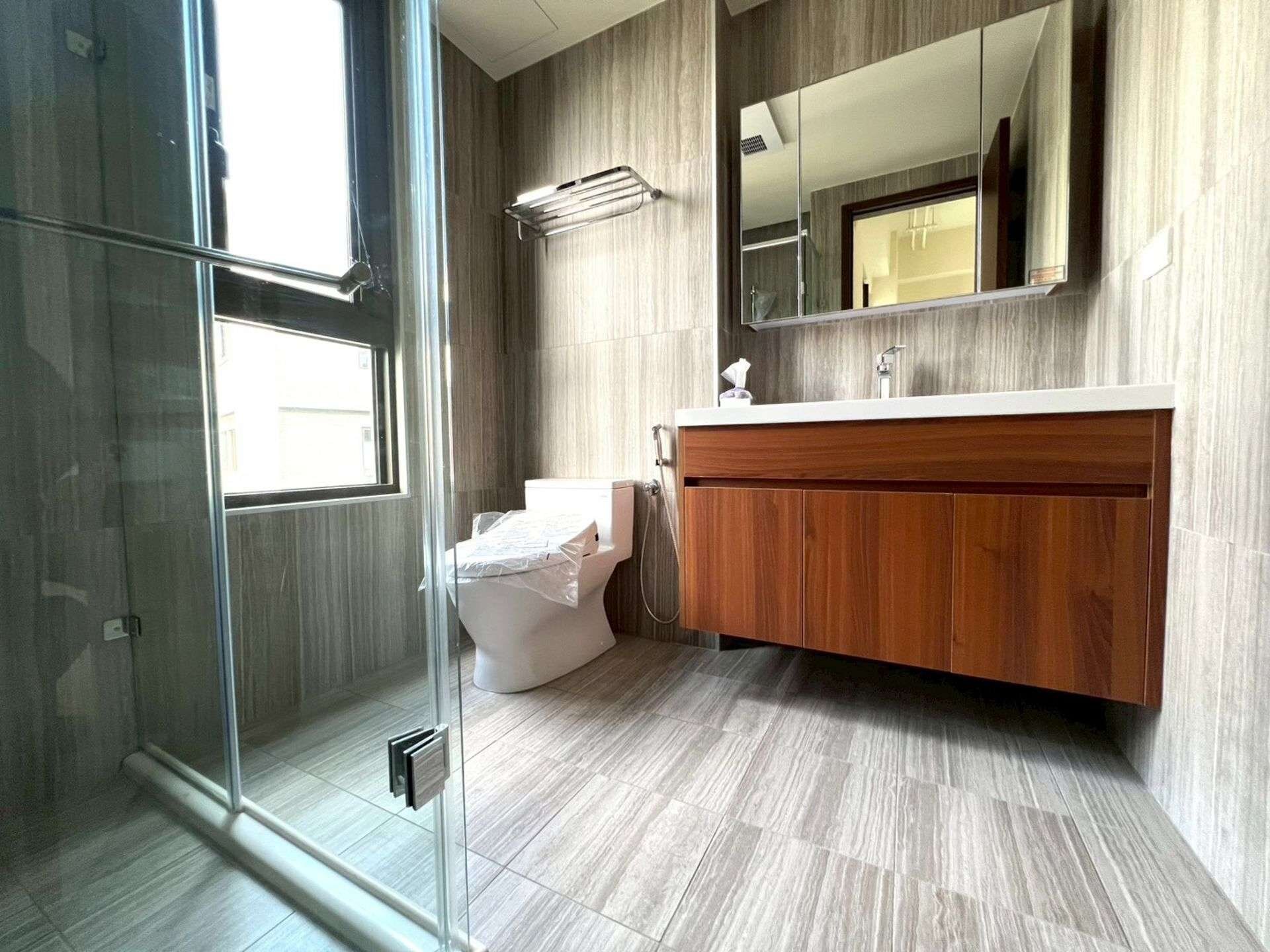建材與配備:大尺寸磁磚:公領域使用100x100cm冠軍拋光石英磚。