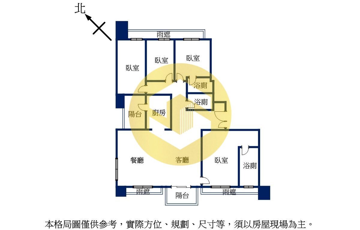 3.本頁格局圖,未依ㄧ定比例繪製,與實際仍有差距,須以房屋現況為主。