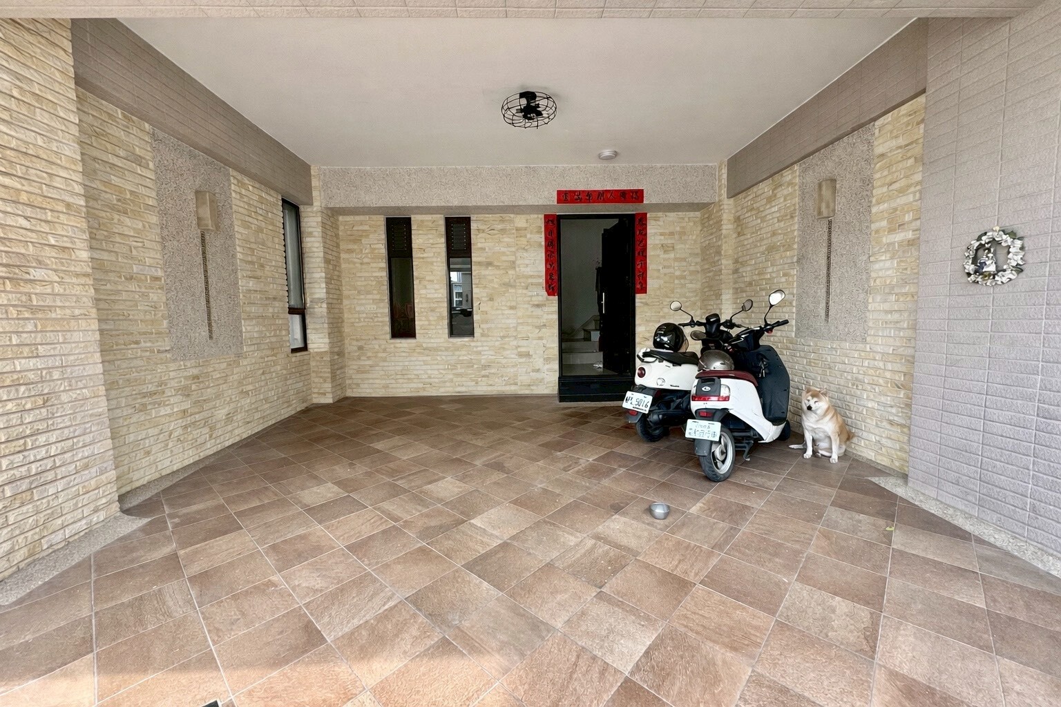 2. 面寬5.5米停雙車沒問題,側牆可再停1部,自有車庫,隱私性佳,環境安靜清幽