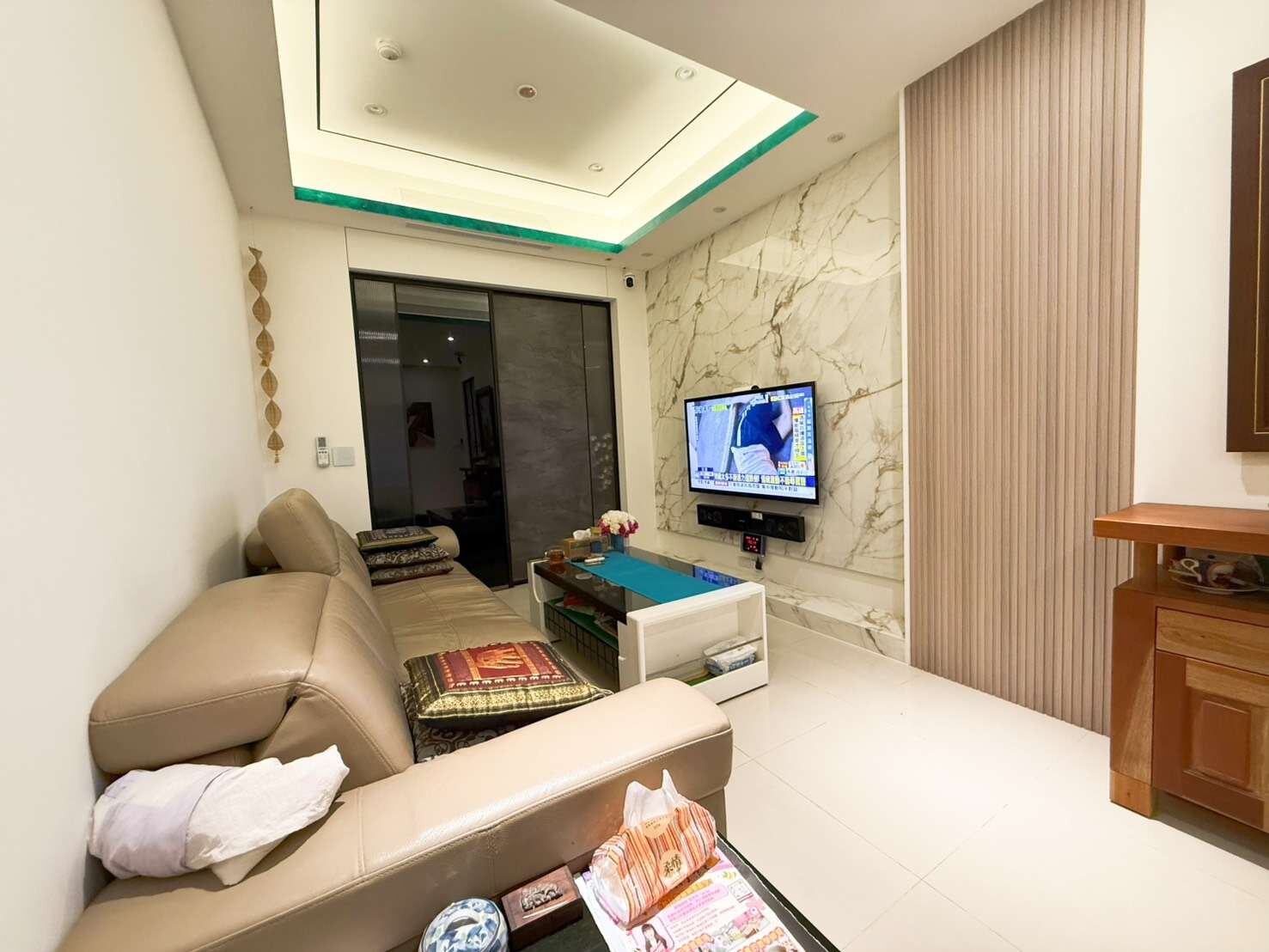 楊梅新農街二段舞揚一綻美裝潢3房加車位 全室吊隱式冷暖空調,連廚房都有,下廚不怕熱 有專業隔音音樂室,任何樂器都免擔心吵到鄰居 屋況佳,高檔裝潢,全室智能語音,開家電輕鬆方便 品味與科技兼具智慧宅,免整理即可入住 歡迎來電賞屋