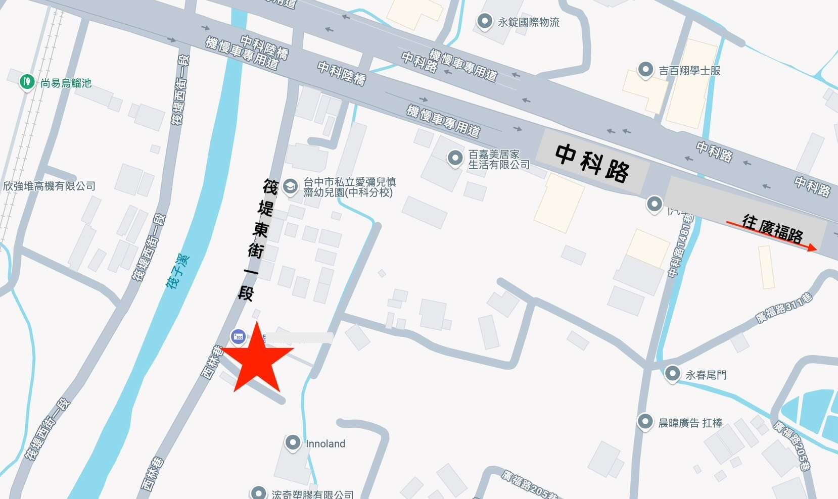 。臨10米活路、筏子溪旁、近中科路、廣福路