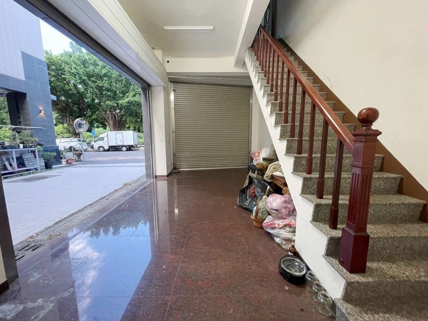 一樓挑高約四米,騎樓可停車,屋況稍作整理,邊間採光通風佳