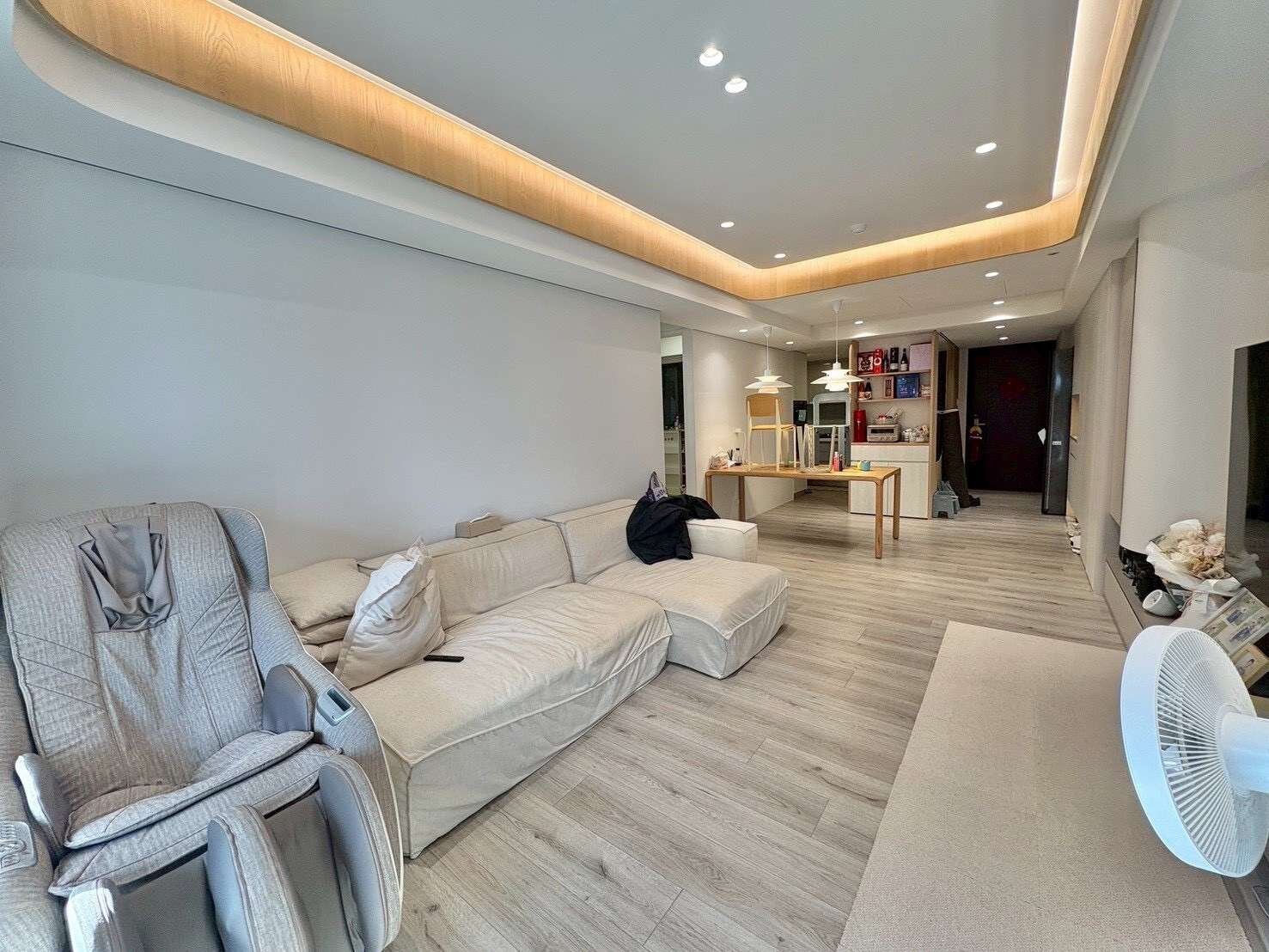 🌳客廳天花板木工精心設計,整體收納空間足夠