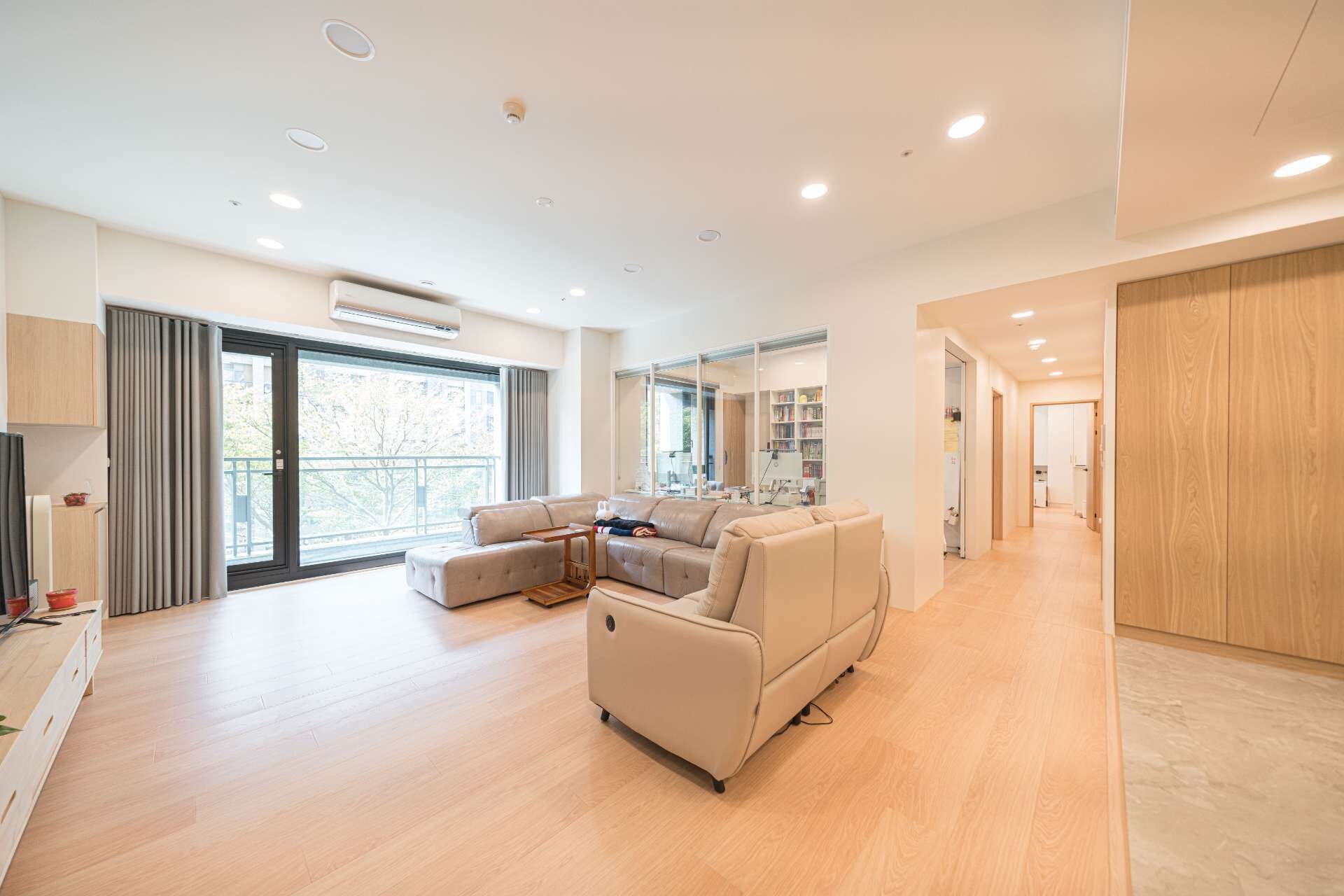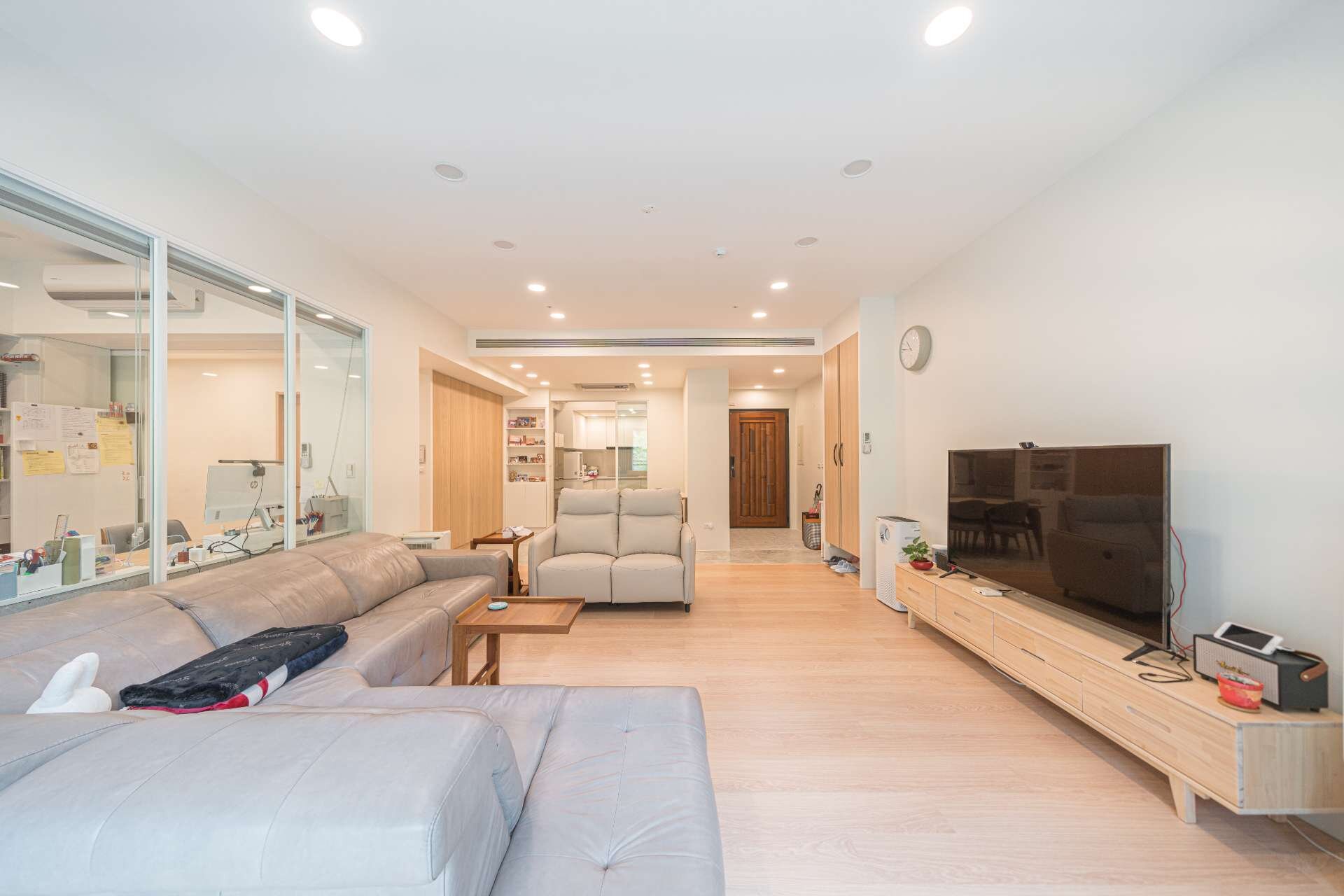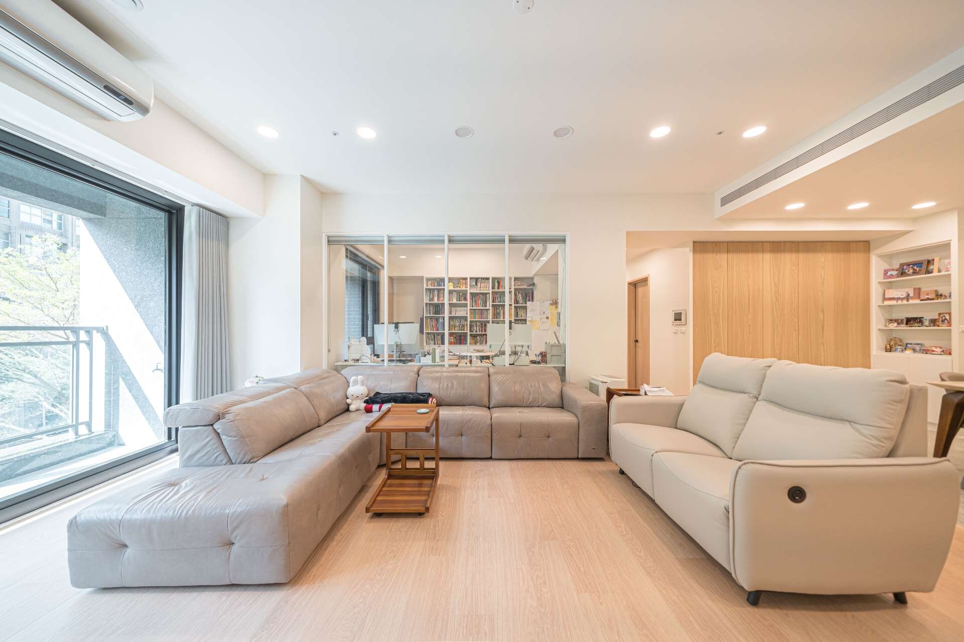 主臥+小孩房+書房+客房一次到位,主建45坪加附屬外推,室內可使用空間約50坪。