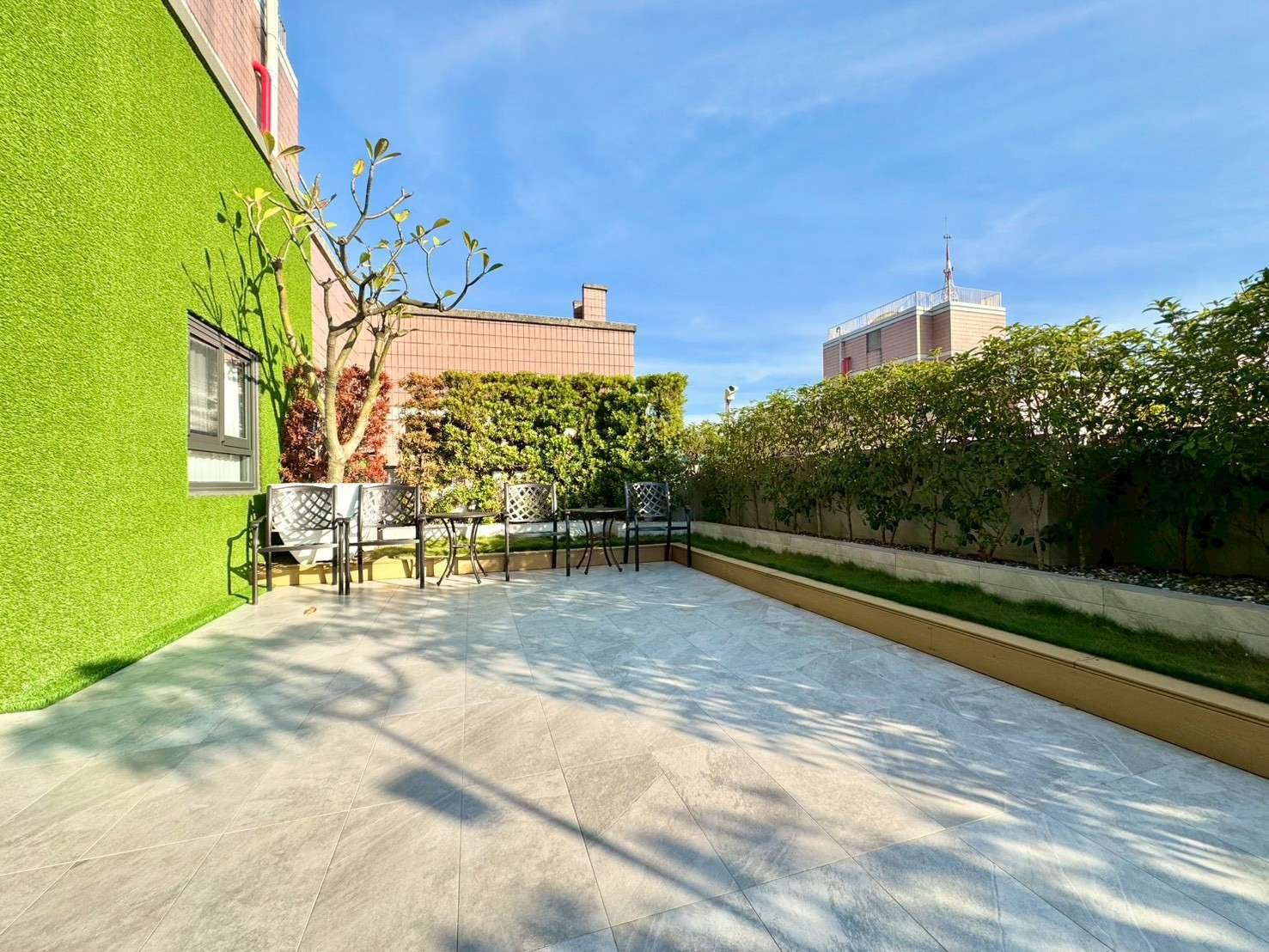 。大室內64坪、三衛浴全部開窗,頂樓空中花園露台近20坪