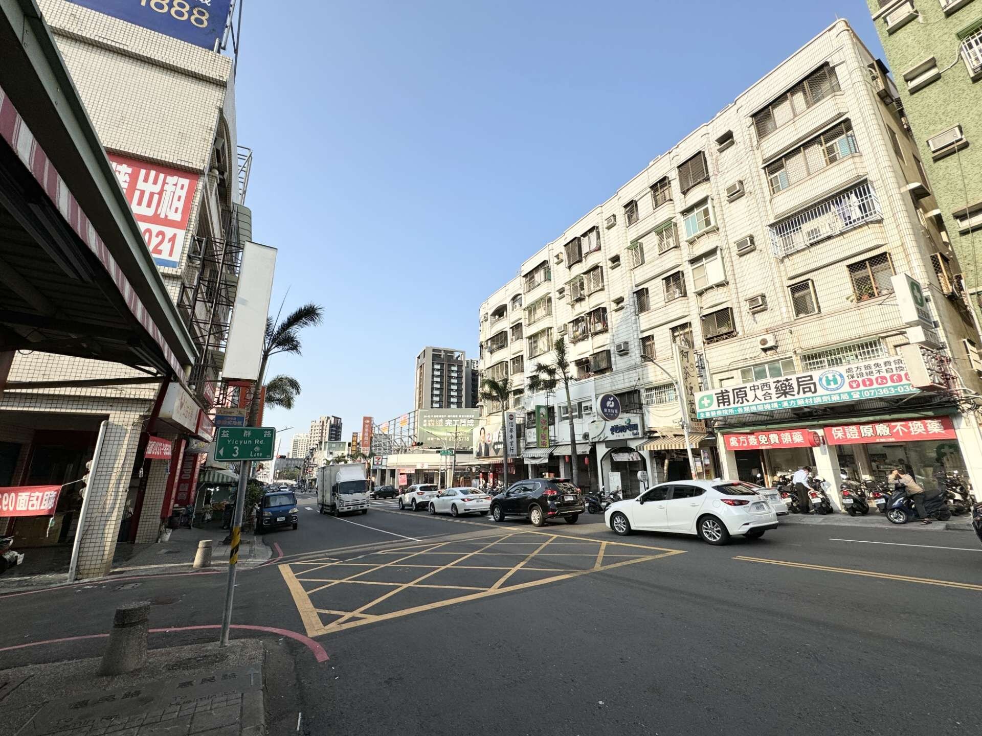 位於德賢商圈 車水馬龍的益群路上 附近有家樂福 小北 蝦皮店到店等連鎖商家 稀有面寬大地坪三角窗透天 三面採光 現況面益群路側為鐵皮屋增建 增建處與主建物擁各自獨立進出口 後方污水處理已做好 屋況需整理 或參考隔壁重新申請建照重蓋 第五種住宅區,建蔽率60%,容積率420%