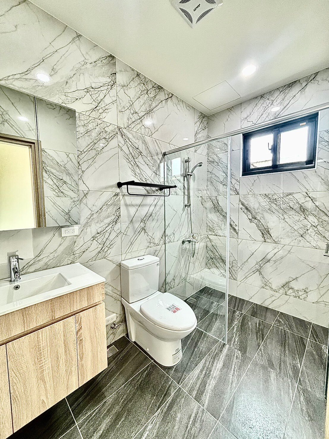 3)三合一電子門密碼鎖,安全無虞;進口花崗岩地材、凱薩衛浴乾濕分離設施間間開窗、高級氣密窗。