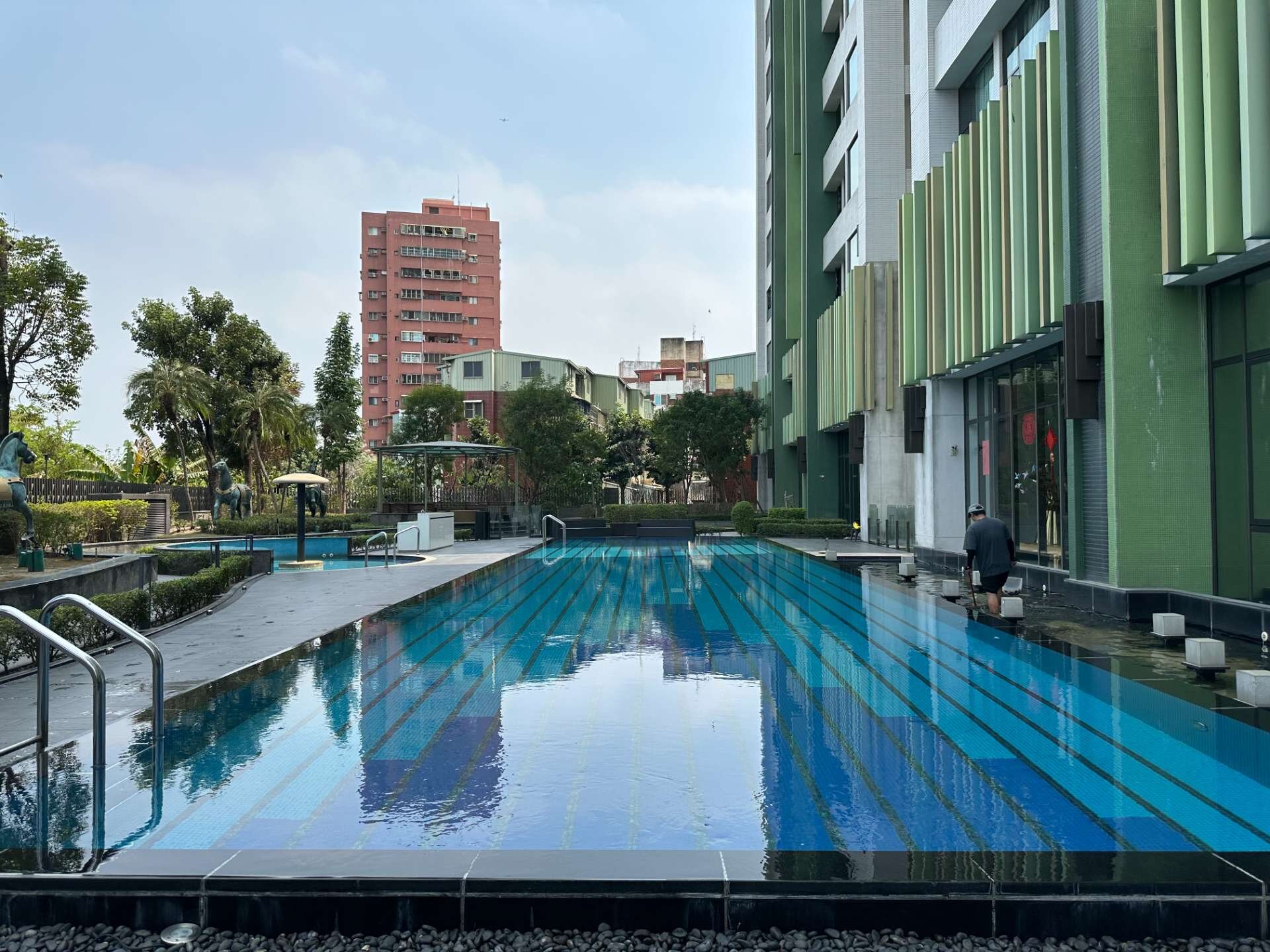 ◎大樓採飯店式管理,1樓露天游泳池、SPA、兒童遊戲室、健身房、KTV室等,頂樓則有烤肉區與空中花園等公設。