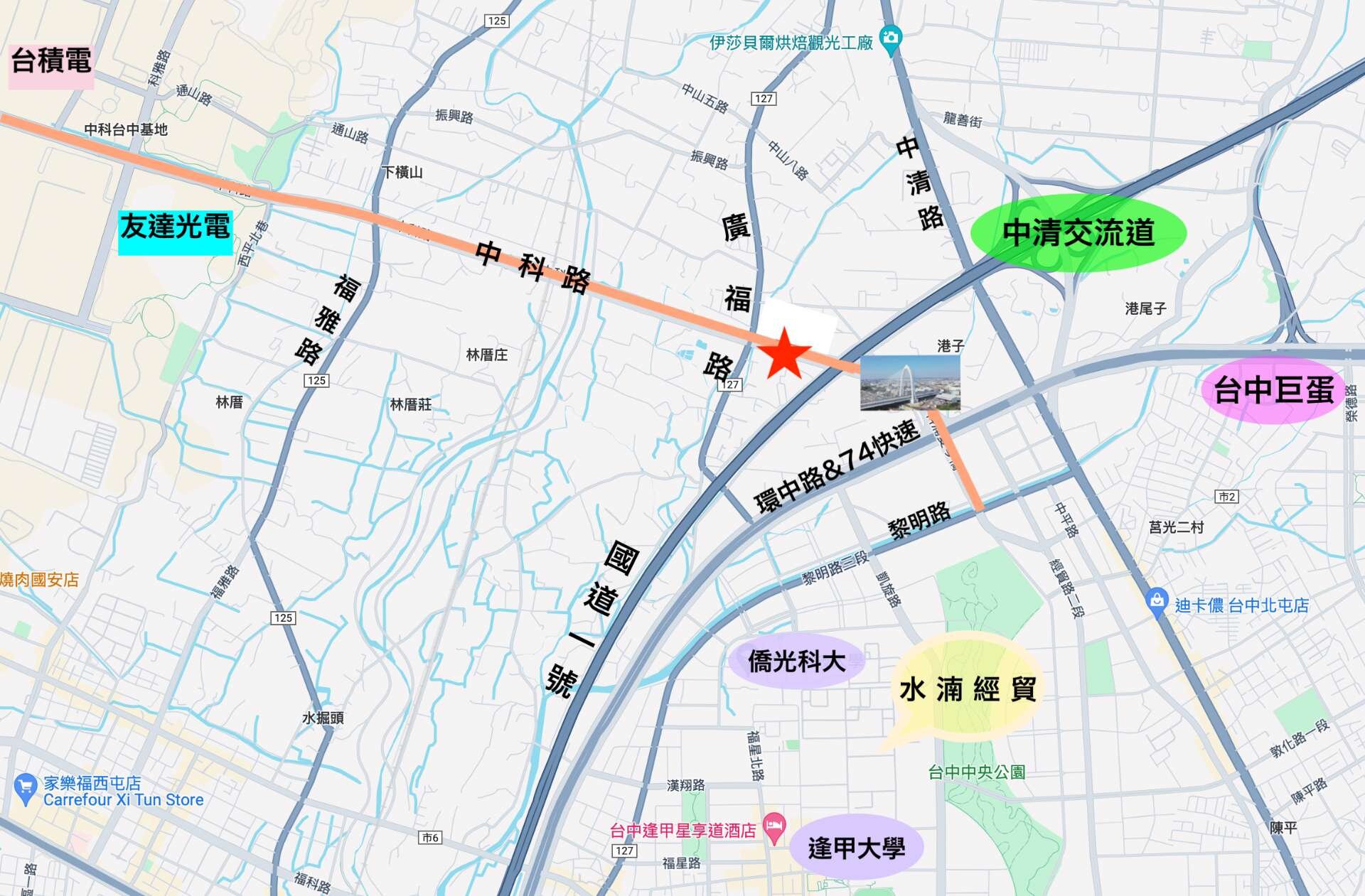 。中清路約5分鐘,愛買/星巴克/茶六/麥當勞...