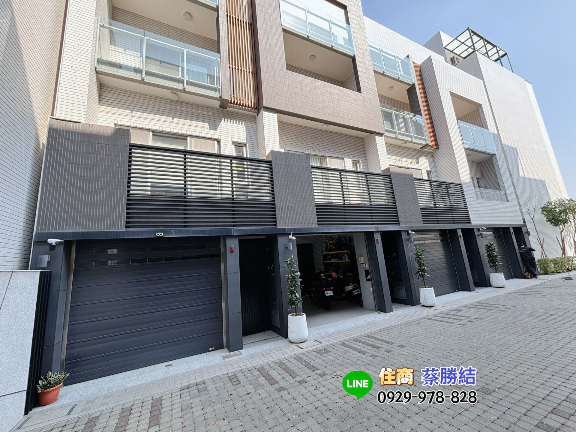 質感美學車墅小豪宅 一樓車庫 可停休旅車 孝親套房 二樓客餐廳 廚房空間 前有陽台 三房兩間套房 四樓房間 曬衣空間 專案經理 0929 978828 蔡勝結 LINE 0929 978 828 阿結