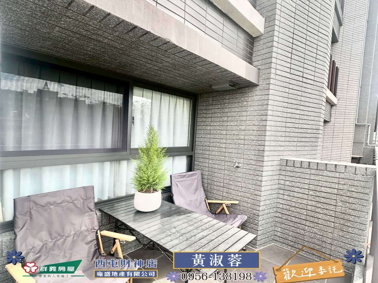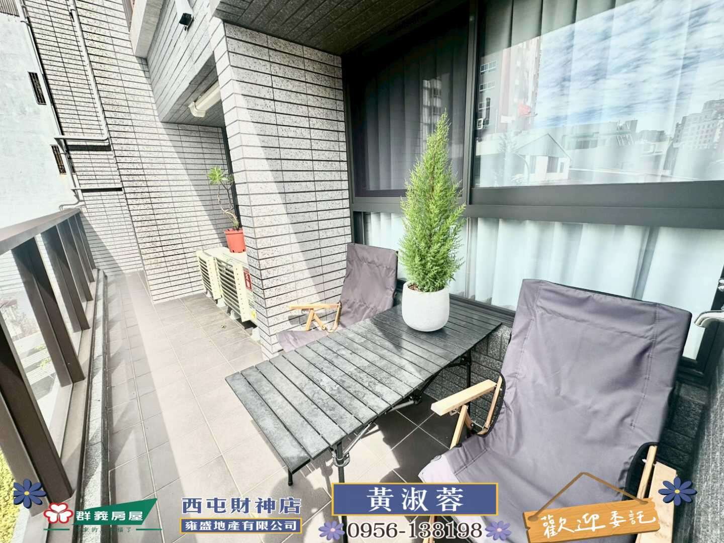 ⭐社區稀有戶別 獨家使用近3坪露臺戶 ⭐市場唯一 溫馨裝潢 免整理直接入住 ⭐優質地段雙商圈 勤美商圈 科博商圈 ⭐格局方正 採光絕佳 雙臥室皆可雙人床 ⭐未來捷運藍線站體 走路1分鐘 ⭐台灣大道五權路口 鬧中取靜 ⭐Bosch洗碗機、TOTO免治馬桶、臥室太格木地板、Panasonic暖風機 黃淑蓉 群義房屋 西屯財神店 手機0956-138198 不動產經紀營業員證書字號:(114)登字第483607號 雍盛地產經紀人證號:(100)南市字第00297號