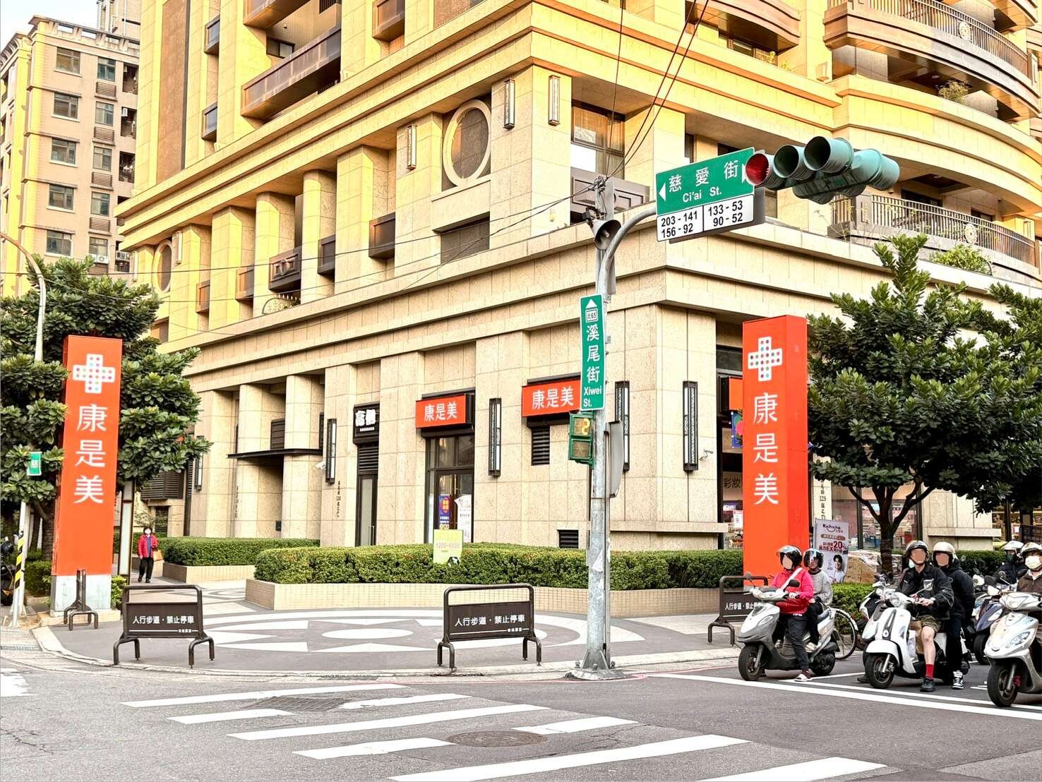 5、溪尾街商圈:郵局、超商、康是美、路易莎咖啡廳...等生活所需、從早餐到消夜美食都方便。