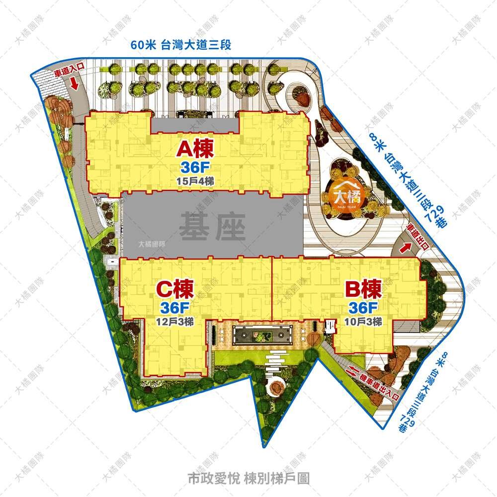 2. 開車可快速上中山高、台74線,台灣大道、環中路、黎明路都是台中主要幹道,聯外交通便捷,未來還有捷運藍線規劃中