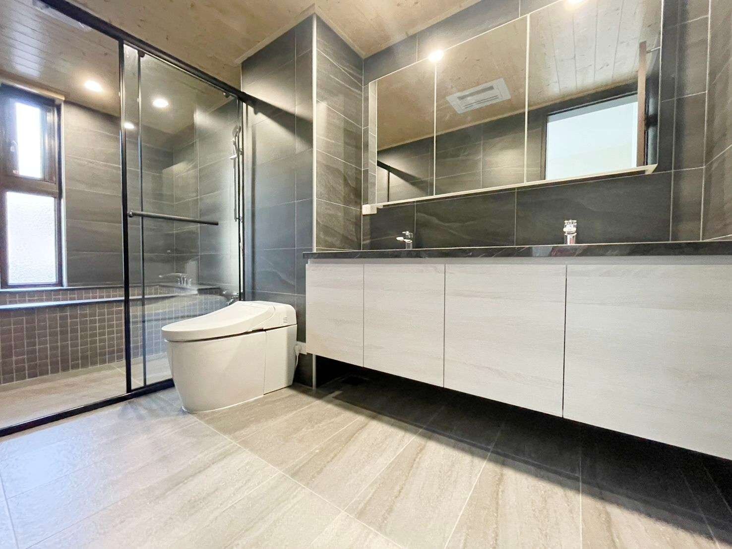 • 衛浴採用TOTO精品系列,配備智慧免治馬桶與三合一暖風機